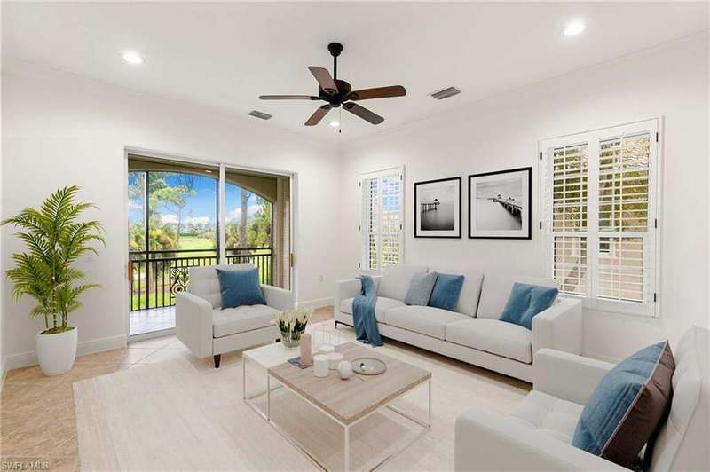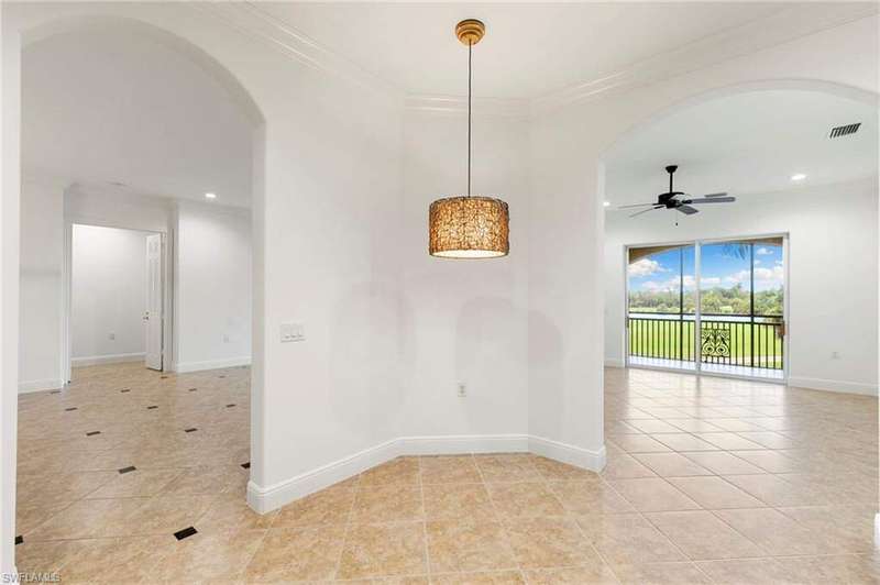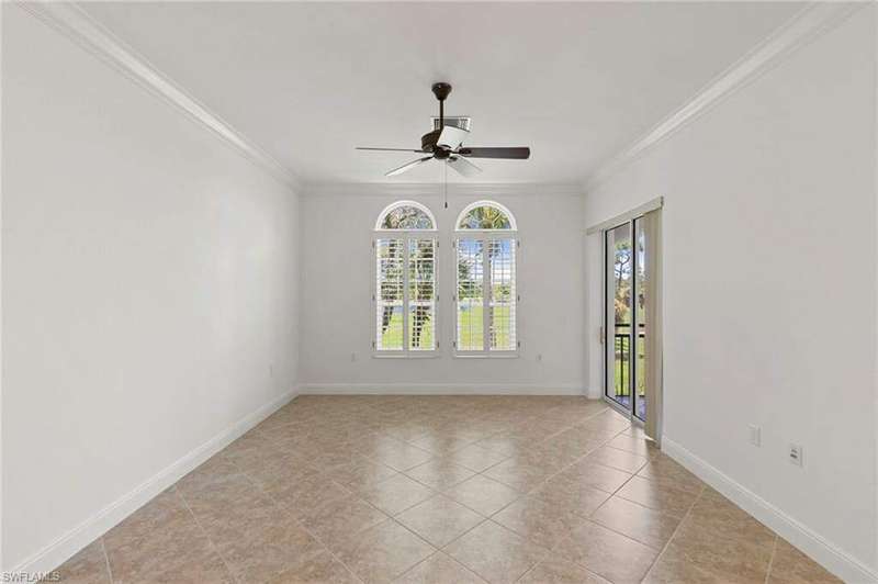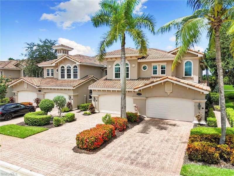 Step into elegance and comfort with this expansive 3-bedroom + den, 3-bathroom end-unit condo located in the well-regarded Cherry Oaks neighborhood. Boasting over 3,000 sq. ft. of interior space, this residence offers the ultimate in resort-style living. Enjoy panoramic golf course and serene water views from your private, expansive lanai - perfect for entertaining or relaxing and enjoying every Florida sunset. Enjoy intimate meals in your eat-in kitchen featuring granite countertops and a generously spacious pantry, or let the evening take you into your formal dining room where memories are waiting to be made. The property is further enhanced by crown moulding throughout and plantation shutters that adorn the home's impact glass windows. With rich wood flooring, built-ins, and crown moulding, the den lends itself as an ideal space to express one's more studious side. Complete with a 2-car garage, high ceilings, generous storage, and storm screens this home delivers luxury, convenience, and security. Don't miss this rare opportunity to own a beautifully maintained, move-in ready condo with unparalleled views and space! The resort style community of Fiddler's Creek is enhanced by a club and spa, fitness center, swimming pools, two golf courses, tennis courts, pickleball courts, a bocce court, fine and casual dining, social activities, and miles of biking and walking paths. Optional beach club and marina memberships are available. Experience the epitome of luxury living, where every detail is thoughtfully curated to complement your lifestyle.