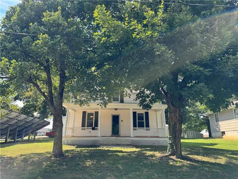 Welcome home to all the historic character with all the modern convivences. All new paint, counter tops, brand new appliances will stay including the refrigerator, washer and dryer. Duel heating/cooling under six months, the water heater are all under 9 months, roof is about 1 year old. The two car garage/shop has 220 Electric plenty of outlets and a finished office area with a gas line for heat if needed. Solar panels in the yard (are owned)! and help out with the electric bill. Enjoy the shaded yard or hangout on the beautiful full size front porch. The current living room has been used a main floor bedroom in the past, the doors are not there anymore.