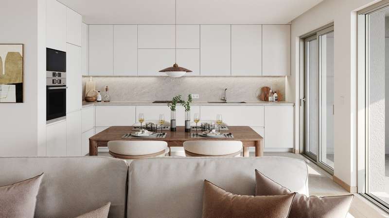 Fantastic 2-bedroom apartment for sale in Ferragudo, with swimming pool and balcony with river views, in the private condominium Ferragudo Hills Residence, a new residential development in the municipality of Lagoa, in the Algarve. This new apartment offers unobstructed views of the village and the River Arade, providing natural light which, combined with the tranquil surroundings, creates the perfect atmosphere of peace and luxury in a dream residence. The property has large indoor and outdoor areas, with the kitchen equipped with top-of-the-range appliances and plenty of storage space. The open-plan kitchen, dining and living room make the whole space harmonious and comfortable. The floor-to-ceiling windows, together with the fantastic balconies, guarantee maximum sun exposure and privacy. The two spacious bedrooms with built-in closets, two large bathrooms, one of which is private, are equipped with modern hanging dishes. Acoustic and thermal insulation and air conditioning offer this 2-bedroom apartment a superior level of comfort, complemented by private parking. In a privileged and quiet residential area, the gated community offers security, exclusivity and peace, benefiting from unobstructed views over the countryside and the river, maximizing its orientation to obtain maximum sun exposure throughout the day. Ferragudo is an authentic and picturesque fishing village, full of history and charm with a unique fishing port, also framed by one of the most beautiful beaches in the Algarve. Located on the hilltop of the picturesque village of Ferragudo, just 3 minutes from the center, Ferragudo Hills Residence is close to golf courses, beaches, restaurants and a variety of cultural and leisure activities. With easy access to the A22 highway and the N125 national road, and just 45 minutes from Faro International Airport. CHARACTERISTICS:Area: 124 m2 | 1 335 sq ft Useful area: 96 m2 | 1 038 sq ft Bedrooms: 2 Bathrooms: 2 Energy efficiency: A FEATURES: 2 bedrooms Equipped kitchen Balcony / Terrace Swimming pool Garden Private parking Air conditioning