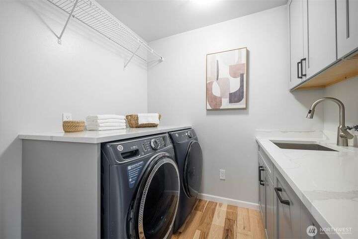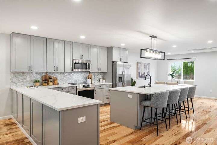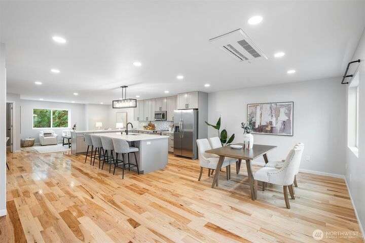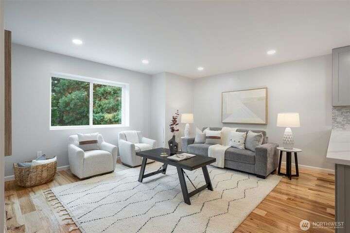 Stunning & bright, this nearly new 2024-built townhome stands apart from the competition w/ quality construction & elevated design. Solid wood flooring, high-end cabinetry, quartz counters & designer tile finishes create a refined feel throughout. The open great room flows into a chef’s kitchen w/ oversized island, built-ins & upgraded appl, perfect for entertaining or everyday living. Flexible lower-level bonus rm adapts for media, play, or home office. Retreat to the oversized primary ste w/ 5-piece spa bath, jetted tub, separate shower & walk-in closet. Outdoors, enjoy year-round green space w/low-maintenance landscaping & turf lawn. A thoughtfully crafted home, in a convenient location, offering true distinction from standard buildouts.