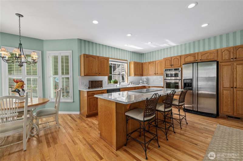 Welcome to the coveted Maple Ridge Estates neighborhood. This lovingly maintained single story home sits on a corner lot with three bedrooms and two full baths. The chef’s kitchen has a large island, stainless appliances, and separate eating space. This desirable floorplan has an open family room with a wood burning stove, a formal dining room and large living room with gas fireplace. Primary bedroom with ensuite bath and walk-in closet, beautiful oak hardwood flooring throughout, A/C, two plus car garage and newer backyard deck. Make this your next home!