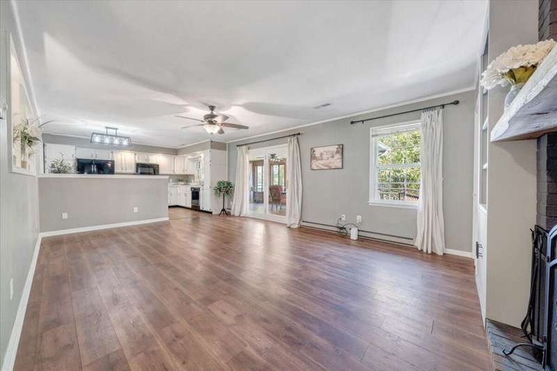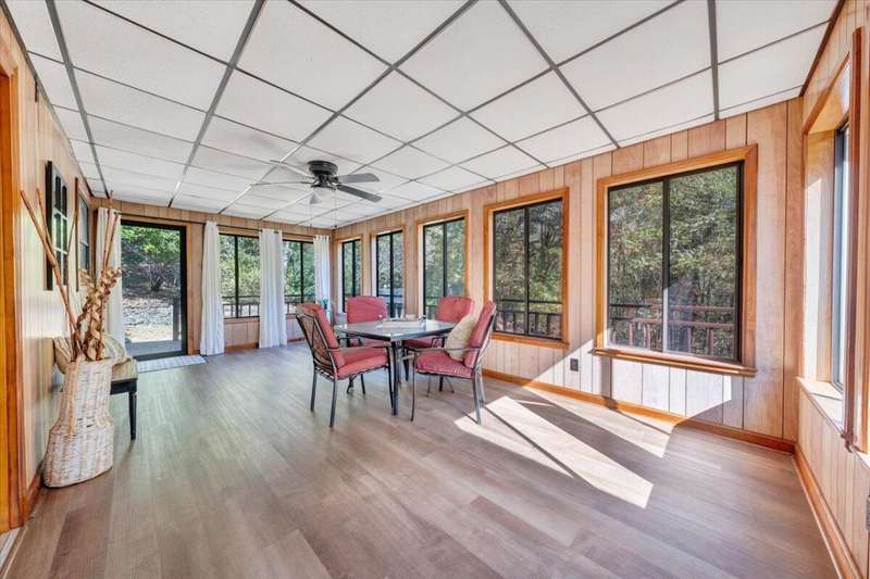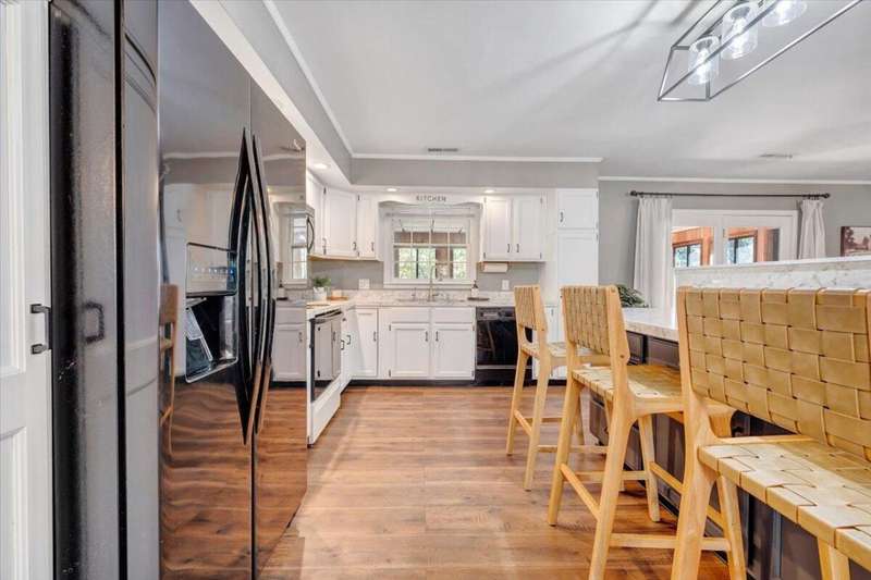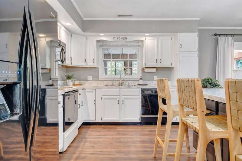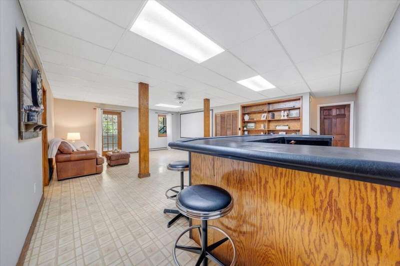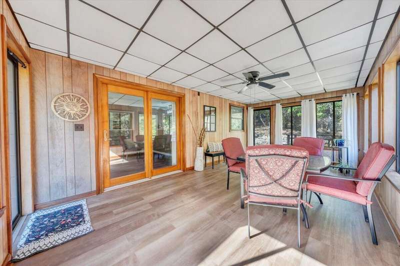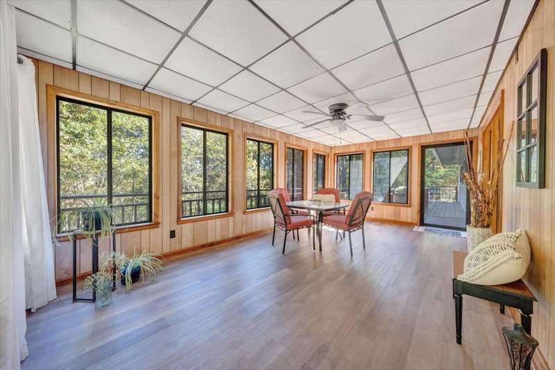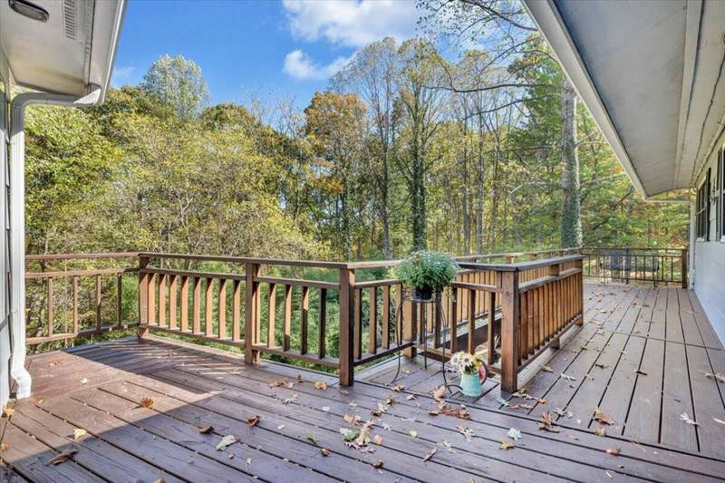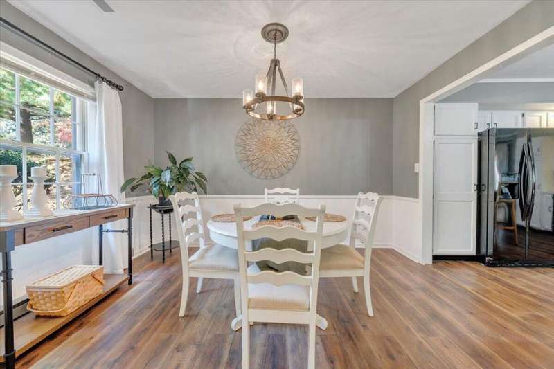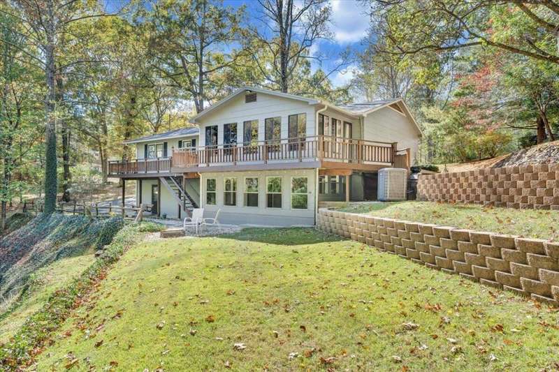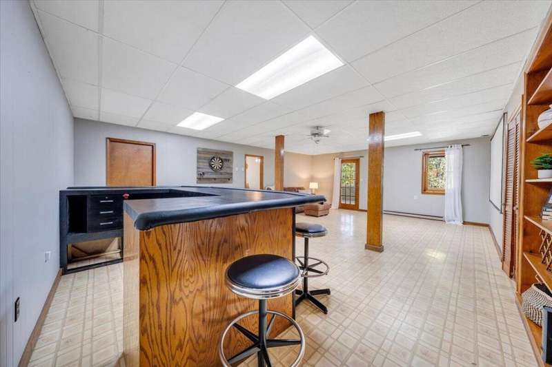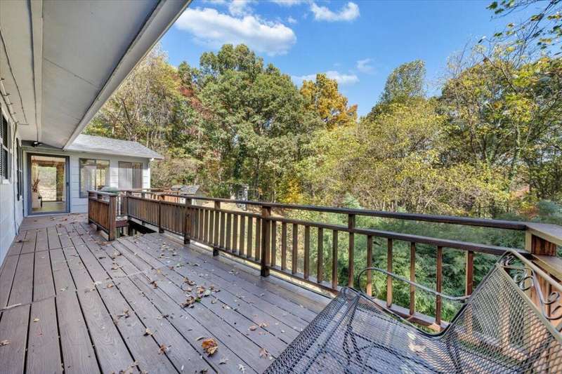 Nestled in the trees on a quiet street, this home offers charm and convenience. Step inside to find an open-concept living area filled with natural light, fresh paint, and new flooring. The main level includes a sunroom perfect for coffee on slow mornings and a wrap-around deck for grilling in the evenings, all overlooking a wooded/private backyard. With a bar and projector screen already installed, this basement was made for entertaining. Currently set up as a 4th bedroom, the basement offers space for an office or potential guest suite. An indoor porch on the lower level and fire-pit in the backyard create perfect spots to unwind.The two-car garage provides ample storage and parking while multiple outdoor sheds make it easy to store tools, lawn equipment, and all your backyard