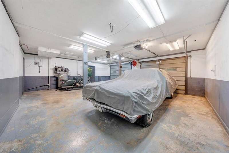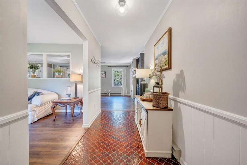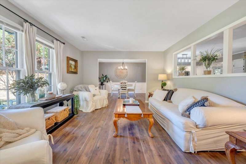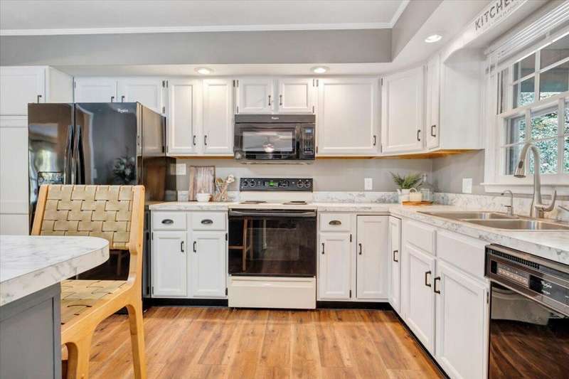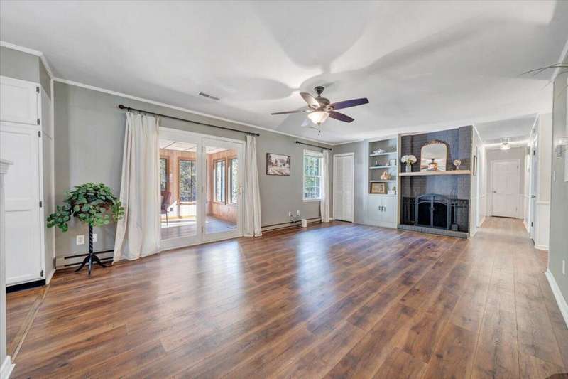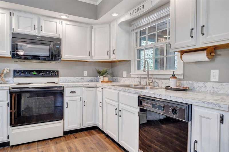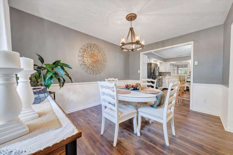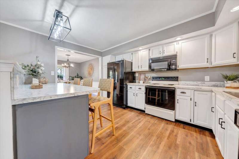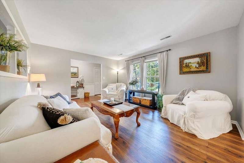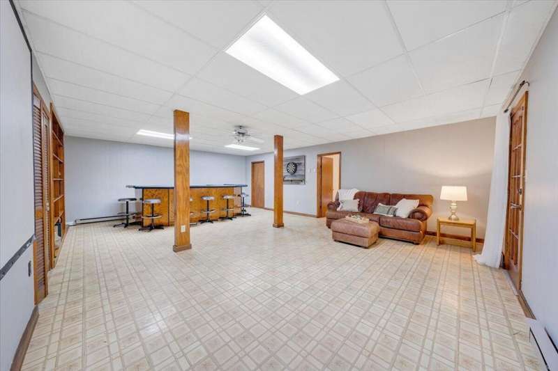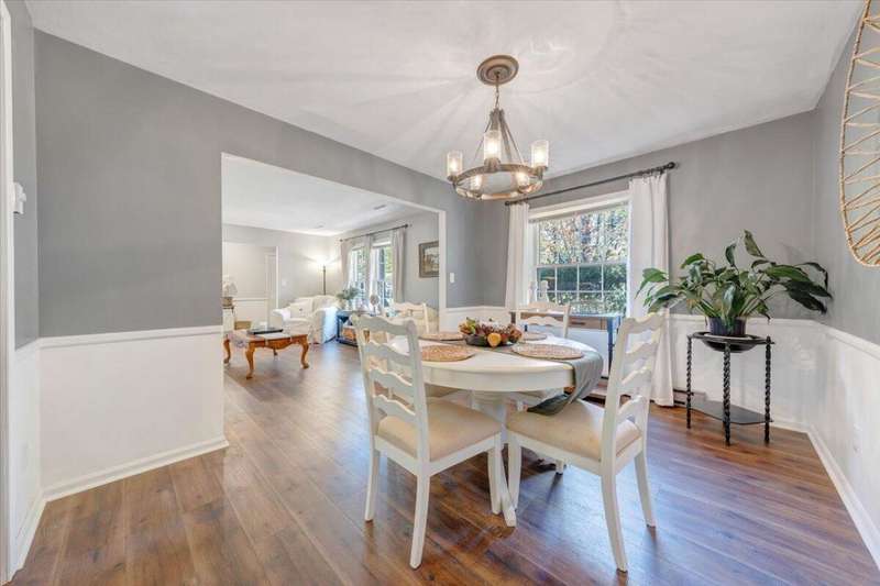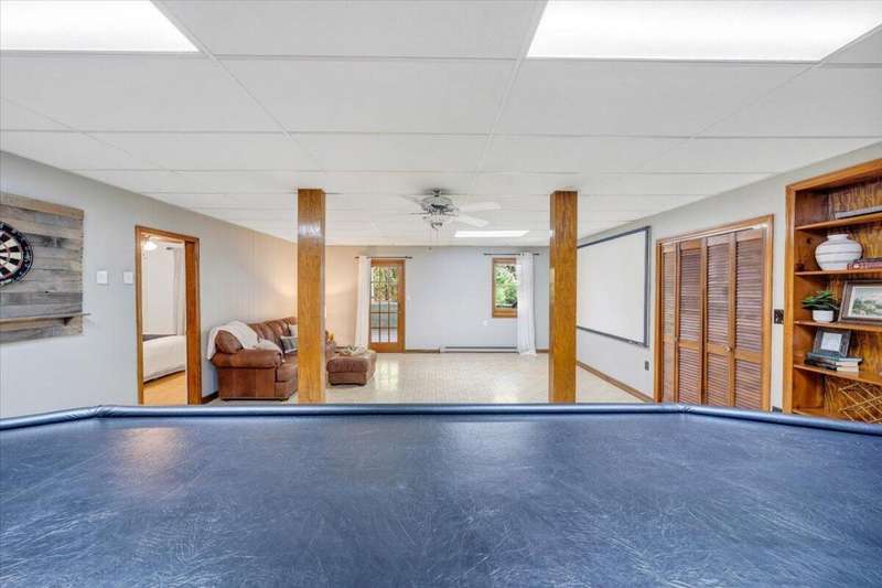 Nestled in the trees on a quiet street, this home offers charm and convenience. Step inside to find an open-concept living area filled with natural light, fresh paint, and new flooring. The main level includes a sunroom perfect for coffee on slow mornings and a wrap-around deck for grilling in the evenings, all overlooking a wooded/private backyard. With a bar and projector screen already installed, this basement was made for entertaining. Currently set up as a 4th bedroom, the basement offers space for an office or potential guest suite. An indoor porch on the lower level and fire-pit in the backyard create perfect spots to unwind.The two-car garage provides ample storage and parking while multiple outdoor sheds make it easy to store tools, lawn equipment, and all your backyard