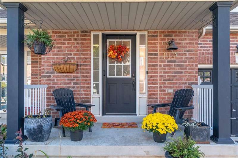 Every once in a while, you walk into a home and you get that feeling - this place is pure class. Every style choice is correct and things feel like they flow perfectly. That's the feeling you'll get in 110 Panton Trail. At 1677 square feet above grade, the home is unexpectedly large and you can feel the difference in space where it matters. You never feel cramped. The foyer and hallways are wide and airy. Principal rooms are generous in size and bright. Carpet-free on the main and second floors with upgraded staircase, railings and spindles. Crown moulding throughout. Chic 2 piece bath in your wide front hall for guests. Large main floor entertaining space, with a flowy living/dining room (with fireplace) that leads into your stunning two-tone kitchen with quartz counters, a peninsula with breakfast bar and a farmhouse sink. Light pours in everywhere through upgraded stylish black vinyl windows and patio door. Walkout to your private, fully-fenced secret garden of a backyard, with stamped concrete patio, a gazebo and access to your oversized garage from the rear. Upstairs is equally impressive, with a wide hallway housing an enormous linen closet; 2 great sized bedrooms; upper floor laundry with lots of cabinet space, stylish tile floors and a farmhouse laundry sink; and a sleek main bath with gold plumbing fixtures. But the star of the show is the enormous primary suite, with its double French entry doors, huge walk-in closet and elegant ensuite with walk-in glass shower and double vanity. The basement offers ample storage and an L-shaped rec room for family movie nights. With its proximity to shopping, trails, parks, schools and a quick shot to the 401 for commuters, you're going to want to put 110 Panton Trail on your list of must-view homes.