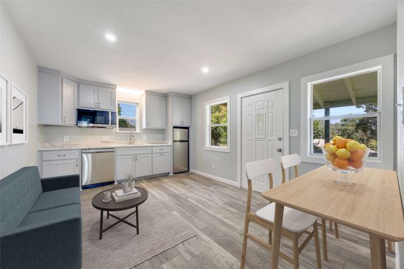 Step into this beautifully updated property on 1.61 acres, offering the ideal blend of modern comfort, flexible living, and investment potential. With two connected but private living spaces, this home is perfectly suited for traditional buyers, multi-generational households, or those seeking an income opportunity. The main side features 2 bedrooms, a full bath, and an open living and dining area that extends onto a spacious deck overlooking the property, perfect for entertaining or enjoying peaceful views. The adjoining unit offers its own living room with kitchenette, bedroom, and full bath, along with a covered patio for private outdoor living. This thoughtful design allows for extended family, guests, or rental use while maintaining privacy and convenience. Interior updates include stainless steel appliances, modern vanities, decorative tile, durable vinyl plank flooring, and a fresh neutral palette ready to complement any style. Recent improvements add even more value, including updated electrical and plumbing, new AC, siding, gutters, fresh paint throughout, and numerous additional upgrades. Each side of the home provides comfort and independence, while still connected to create one cohesive property. Outside, the property provides multiple spaces to enjoy the surroundings, along with a slab already in place for future use. With open acreage and lovely views, it offers a balance of peaceful retreat and room to grow. Location adds even more appeal, just a short drive to Texoma Medical Center and the Texas Instruments campus, with quick highway access for commuting or travel. Close enough for convenience, yet positioned away from the noise, this home truly offers the best of both worlds. Move-in ready and updated throughout, this versatile property offers comfort, style, and value, making it a great fit for buyers searching for a forever home, multi-generational living, or an exciting investment opportunity.