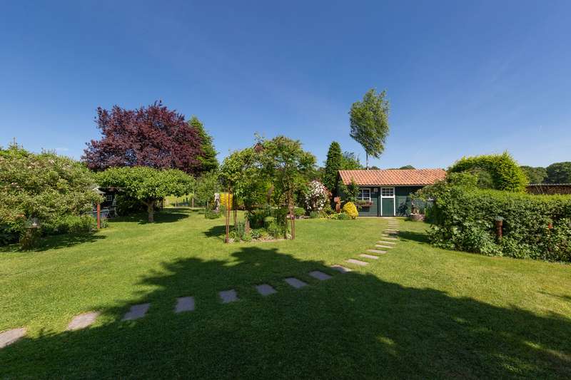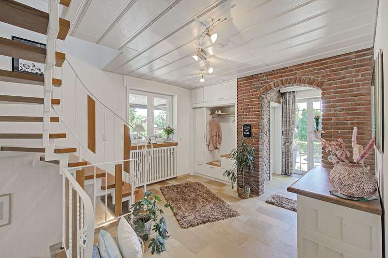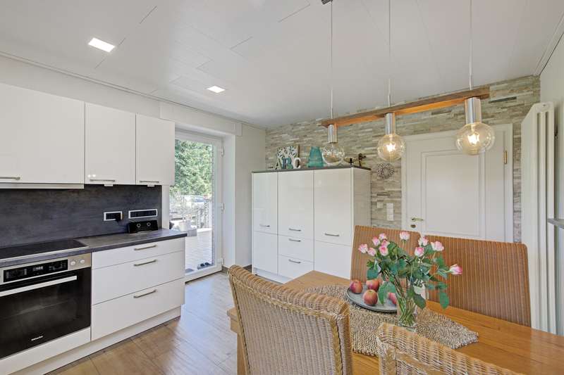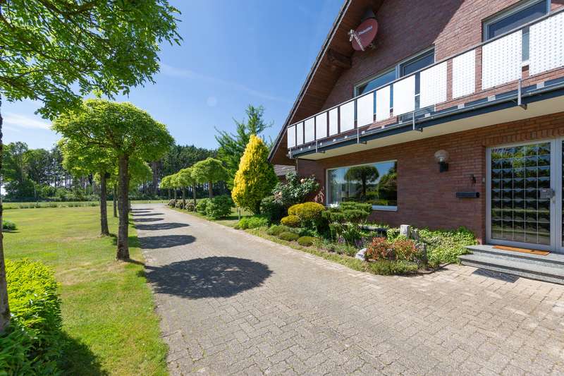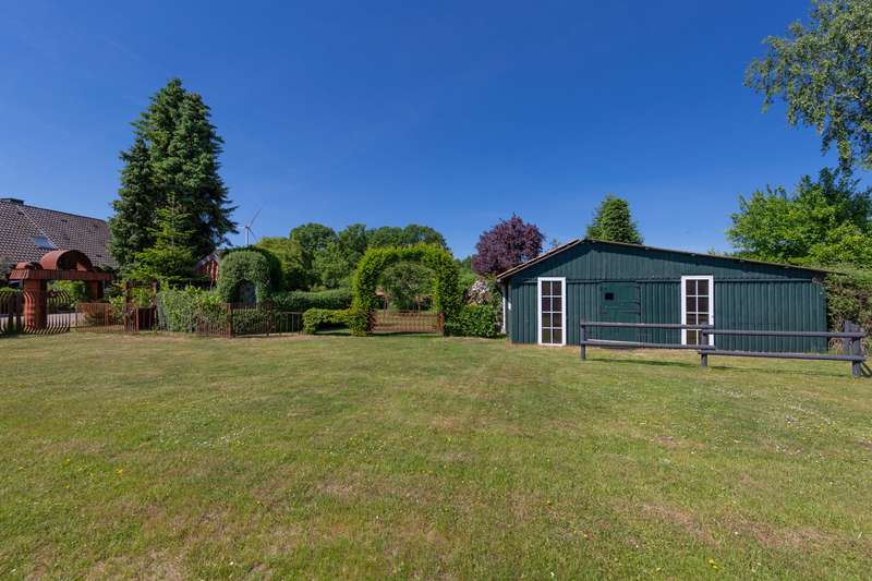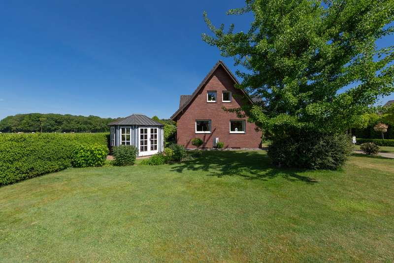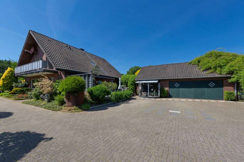 VON POLL IMMOBILIEN presents you with an exceptional real estate offer. Embedded in approx. 3,485 m² of park-like gardens in a natural environment in the outskirts of Dorsten-Rhade, this residence offers a wide range of possible uses. The original building (old stock) from 1951 was extended in 1979 by an annex (main house) the size of a detached house and offers sufficient living space for families with several children, for two independent parties, for individualists with plenty of space or as a multi-generational home. There are a total of six rooms, two kitchens, two bathrooms and a guest WC. Some of the large windows offer a unique view of your own garden and create a great sense of space. A particularly outstanding feature is the spacious, park-like garden, which offers numerous seating areas, some of which are covered. The plot with a total size of approx. 3,485 m² offers plenty of space to develop freely. The complex is complemented by a large vegetable garden, which can be used for self-sufficiency, as well as an open area including a stable, which is ideal for keeping animals. An oversized double garage, several outdoor parking spaces and a basement complete the space on offer. There is also an additional bicycle garage with a comprehensive hobby workshop. Have we piqued your interest? For reasons of discretion, we will be happy to provide you with further information on this property on request. We look forward to a personal meeting.