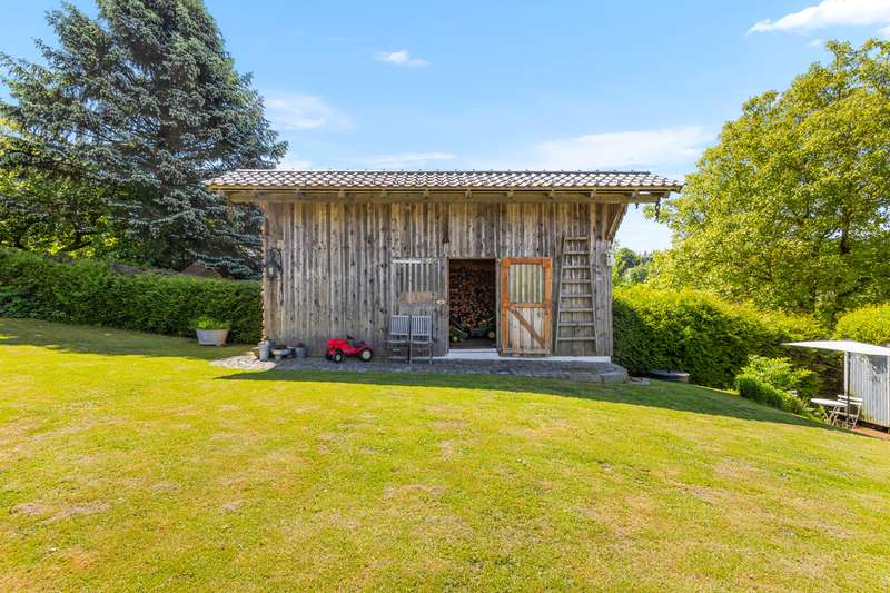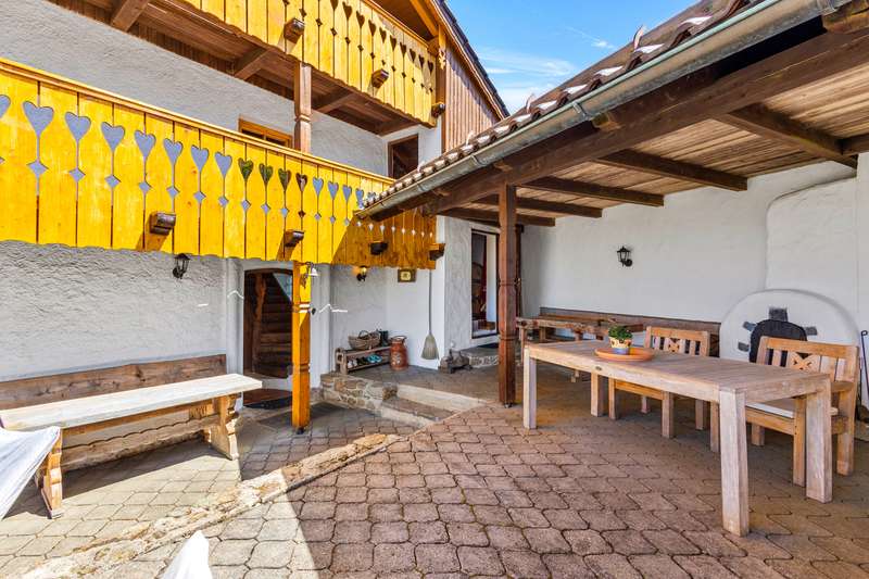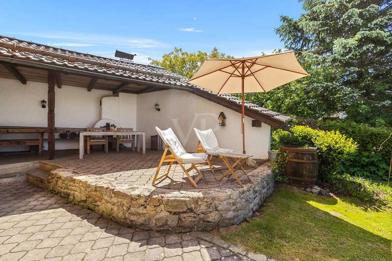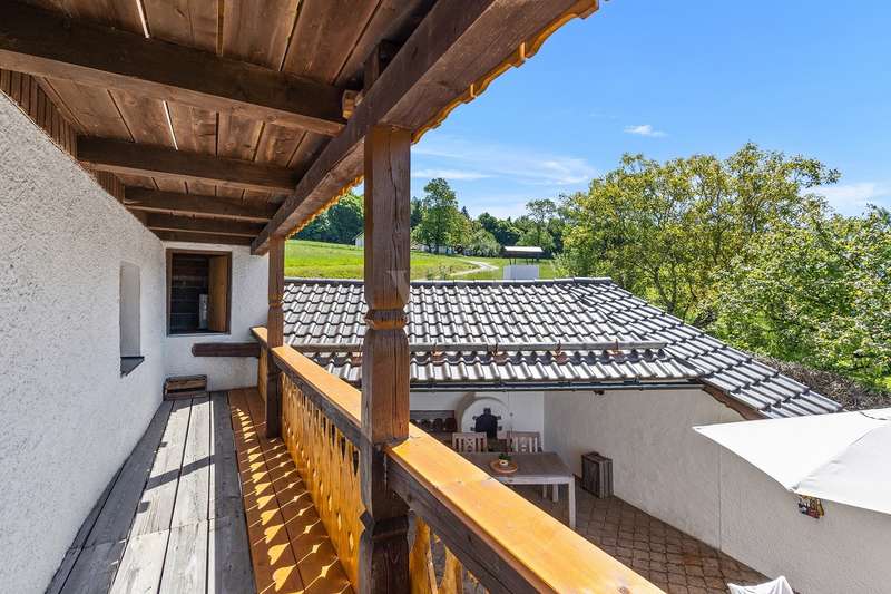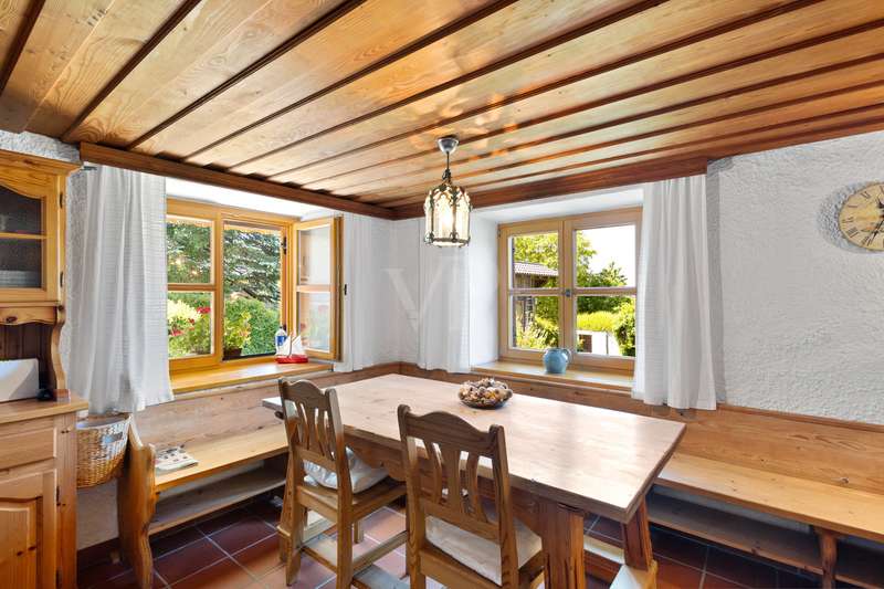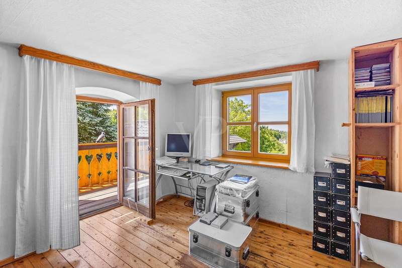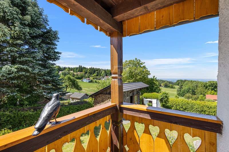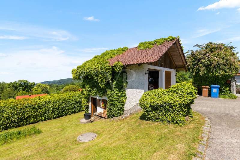For sale is a well-kept house with a living space of approx. 140 m², set on a generous plot of approx. 1252 m². The property is ideal as a weekend home or for nature lovers and, thanks to its location, offers a fantastic distant view combined with excellent privacy in the countryside. Presumably built around 1900, the house was extensively renovated in 1975. In addition, new dormer windows were installed in 1997, further enhancing the charm of the house and the functionality of the attic. The house has a total of five rooms with a ceiling height of around 2 m on the first floor and second floor and between approx. 2 and approx. 2.7 m in the attic. Heating is provided by the cozy tiled stove and individual oil stoves. The furnishings and the construction immediately give a "home-from-home feeling" and make this house something very special. A particular highlight of the property is the large double garage with basement, which was built around 1986. This not only offers enough space for two vehicles, but also additional storage space for various uses. Whether a wine cellar, workshop or small studio, there are many possibilities here. There are also 2 outdoor parking spaces, which increases convenience for visitors and household members. The covered outdoor seating area with views into the distance offers wonderful shelter for private, sociable evenings outdoors. From here, sunsets behind Deggendorf and the Ulrichsberg are a unique spectacle. The property has been continuously maintained and presents itself in a very attractive condition. The combination of living comfort and functional features makes this house an attractive and rare opportunity for prospective buyers looking for a retreat where they can spend their leisure time in peace. There are plans from 1975 to add a storey to the existing weekend house. However, the current owners have been permanently registered there as their primary residence for around 40 years.