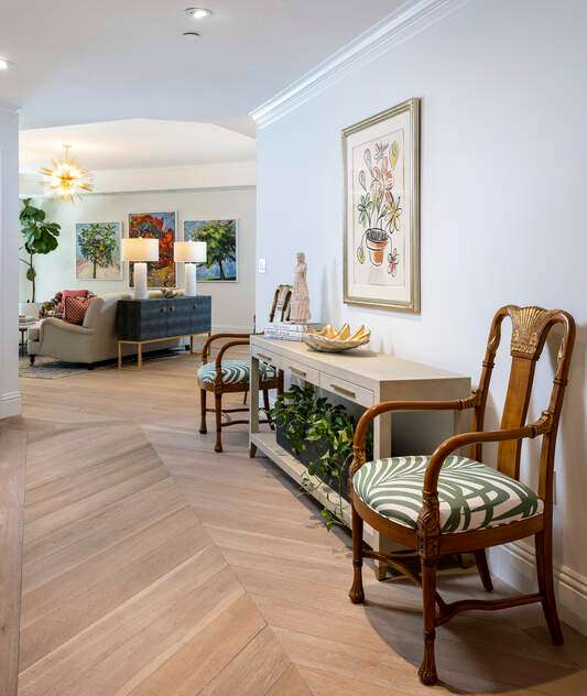 Welcome to this gracious 2-bedroom, 2 & 1/2-bath residence in the prestigious, gated Crescent community at Pelican Bay. Positioned with serene landscape views, the home offers a refined entry via a semi private elevator into a foyer with beautiful hardwood flooring that extends throughout extending into the kitchen, dining area, and powder room. Natural light floods the expansive living and dining spaces, accented by tray ceilings, crown moldings, and recessed lighting. Sliding Impact resistant glass doors open to the spacious covered lanai. The primary suite includes dual vanities, separate tub and shower, and elevated finishes throughout. The kitchen features timeless cabinetry, high-end appliances, and a wall of built-in storage cabinets. Pelican Bay community offers 3 miles of pristine white sandy beach with 570 acres of natural preserves and mangrove forests. There are two private beach restaurants with private tram service, state of the art Community Center, 18 tennis courts, pickle ball coming soon, 27 holes of Arthur Hill's championship golf with membership, bicycle and jog paths. All located close to shopping, theaters, dining, Center for the Arts, Mercato, Waterside shops, and only minutes from downtown Naples.