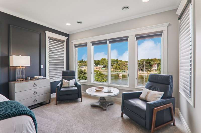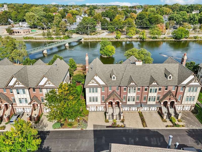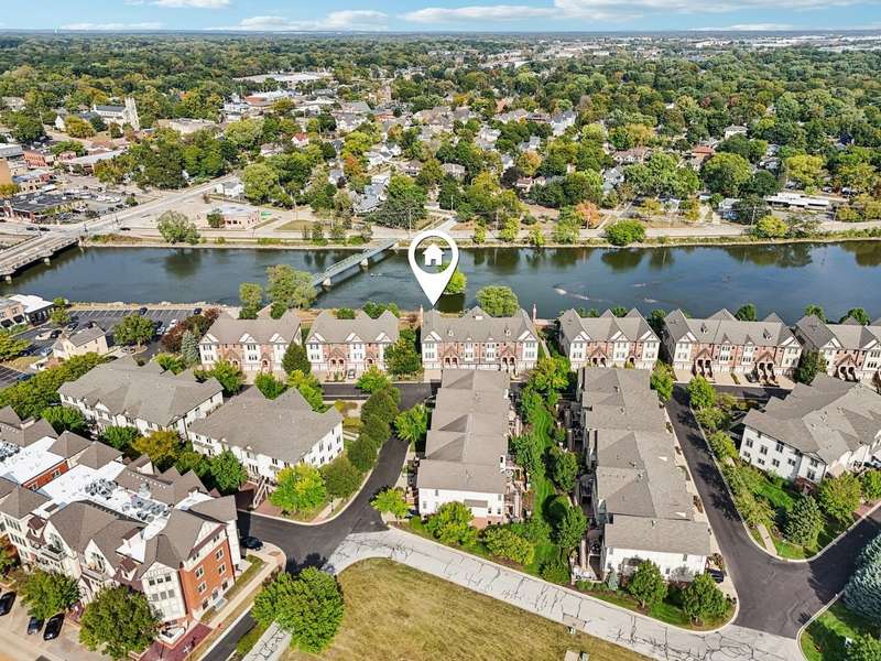 Dreams do come true! Rare END-UNIT RIVER FRONT Brownstone with ELEVATOR in the heart of historic downtown St. Charles is just steps from restaurants, Whole Foods, specialty shops, the riverwalk, music venues and more. Offering over 3,400 sq ft of luxury living, this luxurious residence lives like a single-family home but provides a maintenance-free lifestyle. The wide-open main level features hardwood floors, crown molding, walls of windows, a fireplace, NEW custom bar and a BRAND NEW White chef's kitchen with high end appliances, "Taj Mahal" quartzite counters, huge center island and access to the dining area, sitting area and private deck with sweeping Fox River views. The second level, accessible by stairs or elevator, boasts a stunning primary suite with two custom closets and LUXURY SPA LIKE bath with dual vanities, oversized shower and stand-alone tub. Two additional bedrooms, a full hall bath and laundry center complete the upper level. The WALK OUT LOWER LEVEL includes a second family room with brick fireplace, private patio, chic office with built-ins and rough-in for a future bath if desired. Oversized 2-car garage with bonus storage, abundant closet space and multiple outdoor living areas make this a rare find in St. Charles' best location-close to Metra, Randall Road shopping and all downtown has to offer. Be in the heart of downtown for Fireworks, Parades and Community events- This is the life! Immaculate move in condition as well!
