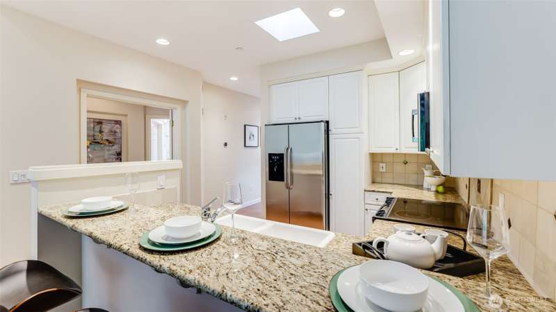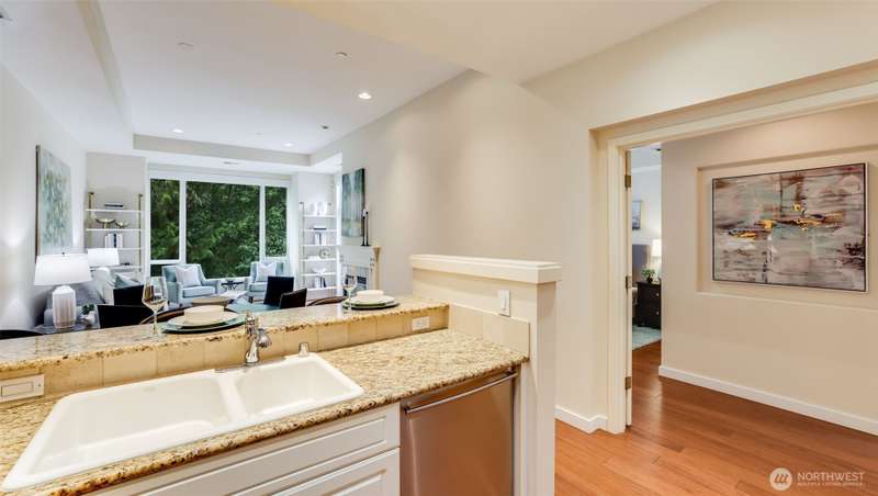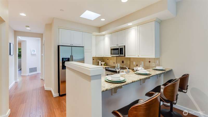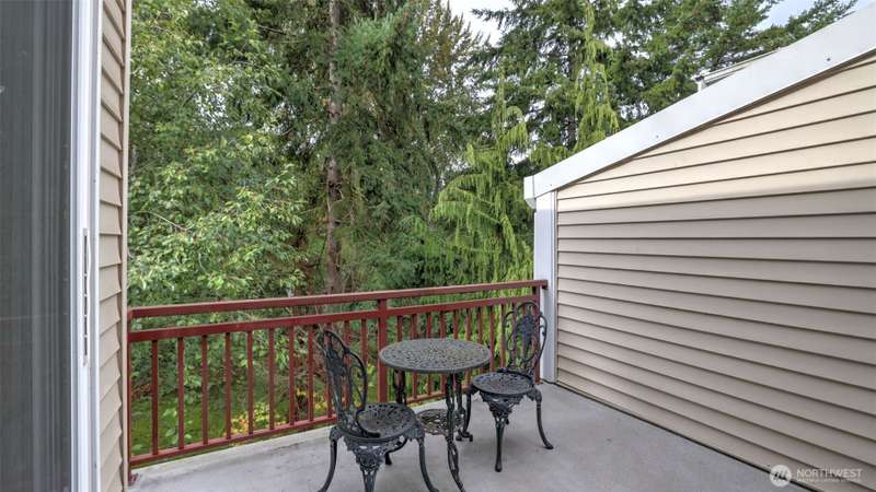 Nestled among serene park-like grounds in this impeccably maintained gated condo community, is this thoughtfully designed stunning top floor penthouse home featuring 2 bedrooms/2 bathrooms, plus home office. The spacious living room includes a cozy gas fireplace & private patio. The upscale kitchen includes white cabinetry, granite countertops & breakfast bar w/stainless appliances. The to-die-for primary suite is complete w/a gorgeous en-suite, walk in closet & private patio access as well. Conveniently located to walking trials, top-rated schools, shopping, dining & major tech hubs and I-405, this home also boasts 2 parking stalls in the gated parking garage, large storage unit, in-unit laundry, & ample guest parking. Welcome Home!