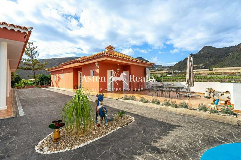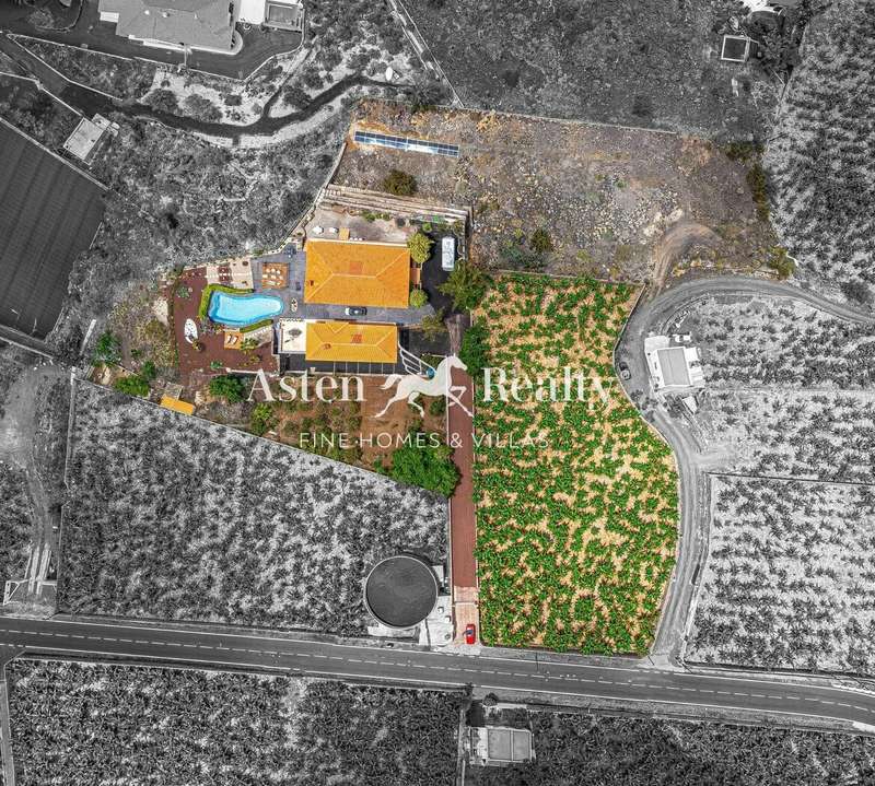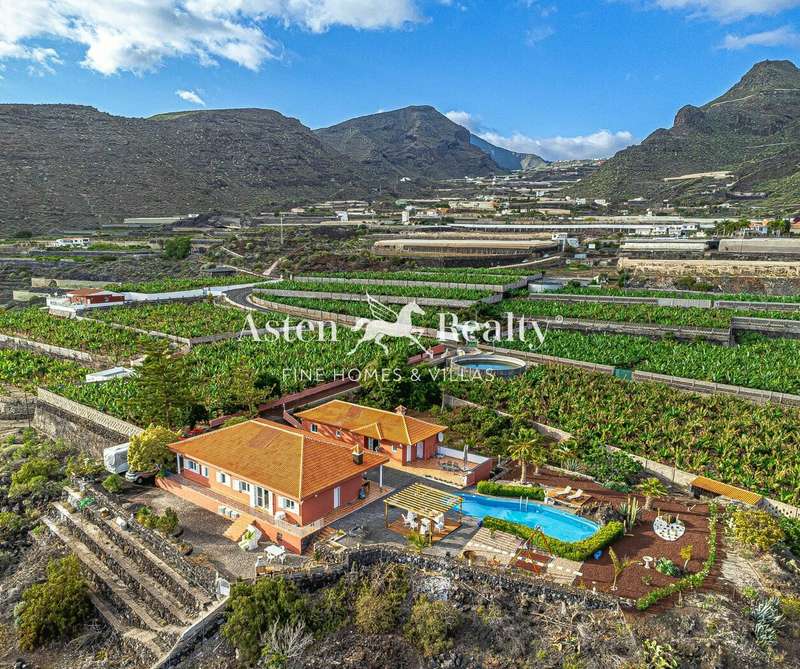 Spread across 9,313 m² of land, this corner of Tenerife offers a lifestyle rooted in nature, silence, and authenticity. Surrounded by banana trees, avocados, and mangoes that thrive effortlessly, the property gifts endless views of the Atlantic Ocean and La Gomera, offering a new perspective each day.