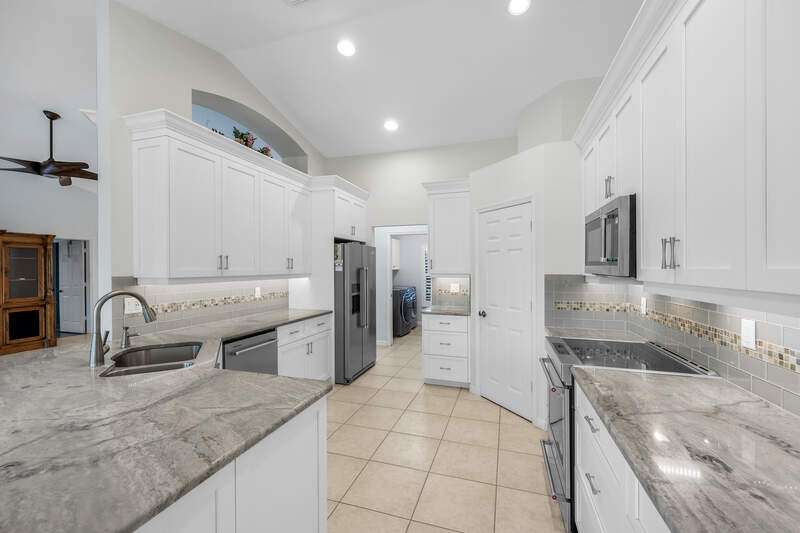Located in the heart of Marco Island, this 4-bedroom, 2-bathroom well maintained home offers a spacious layout just minutes from beaches, shopping, and dining. This move-in ready residence features a 2022 kitchen and bathroom remodel, quartzite countertops, modern appliances, tile and plank flooring throughout, and no carpet. The split-bedroom floor plan offers comfort and privacy, with a spacious laundry room and well-appointed living areas. Enjoy outdoor living with a saltwater pool, surrounded by a privacy fence for peaceful relaxation. Home is equipped with impact windows (2018) and a 2018 roof for peace of mind. Located less than 10 minutes from Tigertail Beach and Residents' Beach, this home offers the perfect blend of style, location, and convenience.