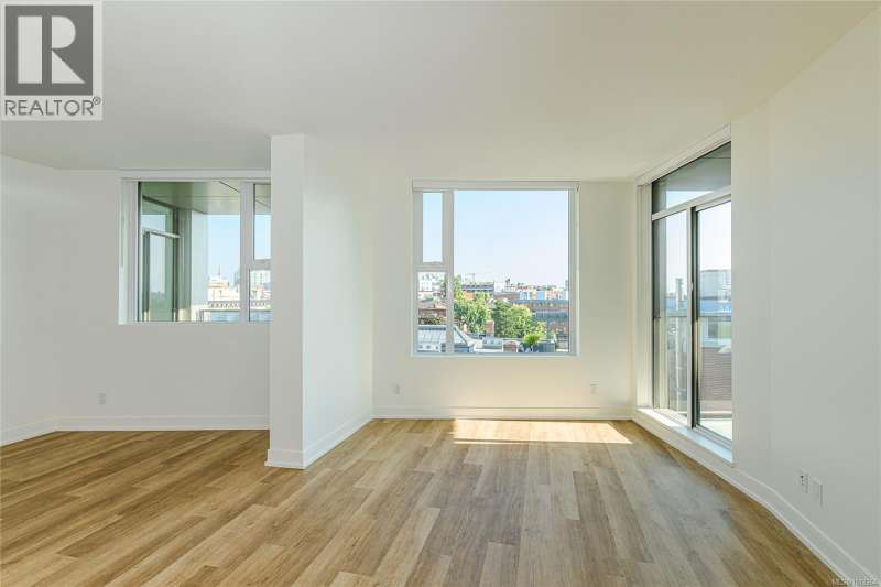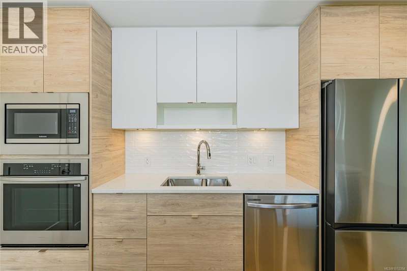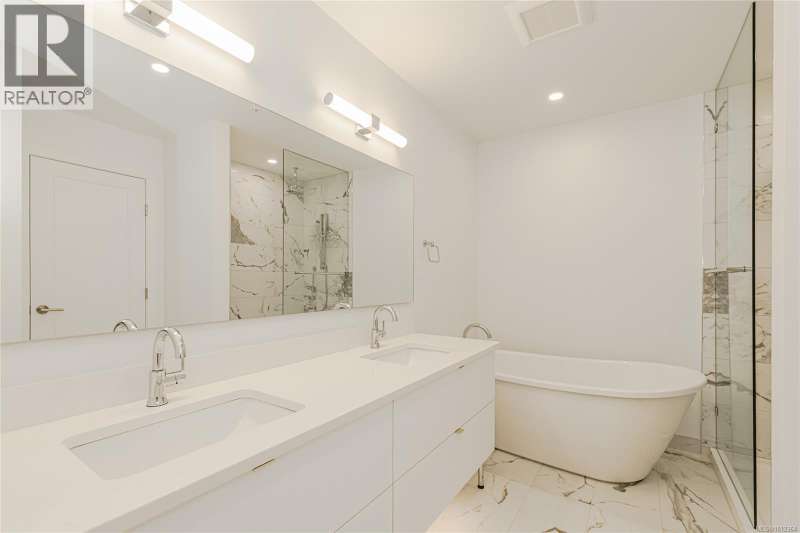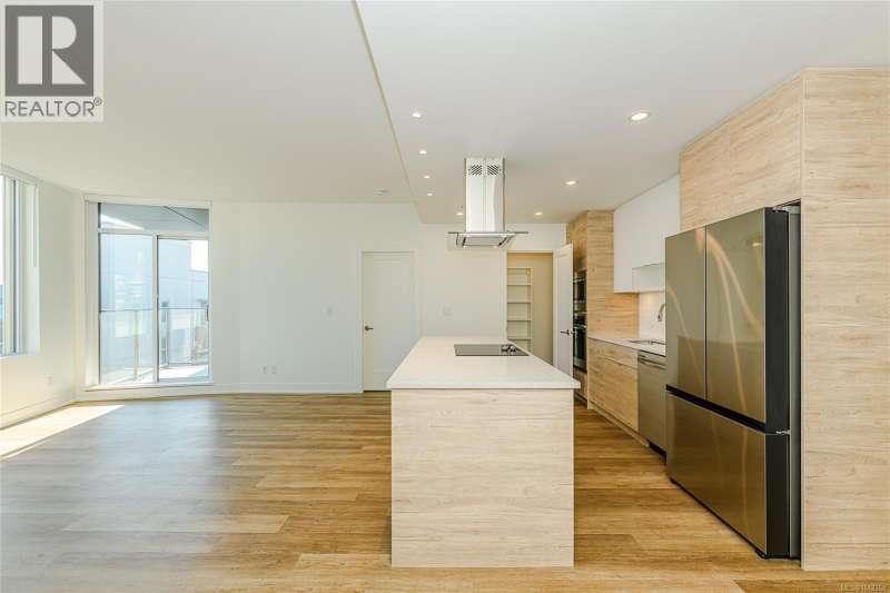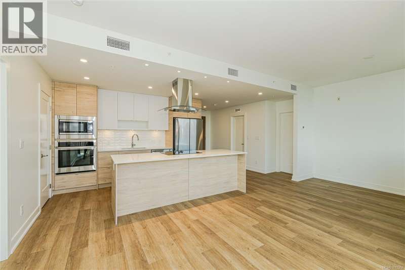 Welcome to the Pearl Residences, a premier boutique style waterfront steel & concrete building located in the heart of Victoria's vibrant & historic Old Town district. This bright open-concept 2 bed 2 bath unit features large windows to take in the city views. Inside you'll find 9 ft ceilings, a contemporary kitchen with a light colour scheme, high-end S/S appliance package, quartz countertops, in suite laundry, central air heating/cooling for comfort, and radiant floor heating in the bathrooms. Each bedroom has direct balcony access, walk-in/through closets, and spa-inspired bathrooms. GST INCLUDED. Enjoy the utmost privacy of being one of only two units on this floor. With tandem parking for two, storage, bike storage, a fitness facility, kitchen equipped amenity room and pets allowed, this unit will have you ready to live the ultimate luxury downtown urban lifestyle! (id:58403)