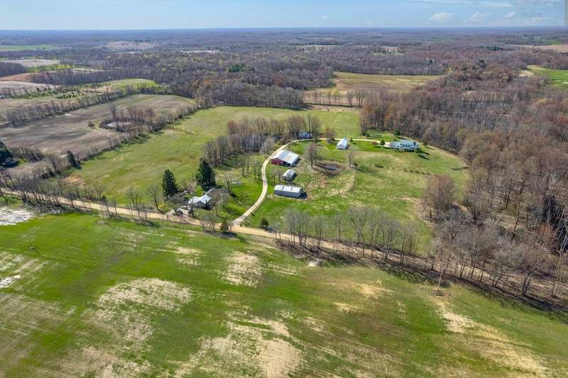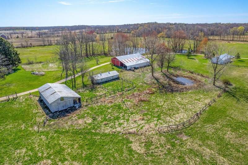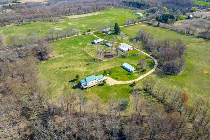Placed perfectly atop rolling hills, surrounded by nature, woodlands and a pond singing with frogs, you'll find this one of a kind 39 acre homestead. The home was built in 1998 and has a total of 7 possible bedrooms and 4.5 baths, making it a great opportunity for multiple generational living. The walkout lower level has been used as a separate apartment in the past. The main level has 2 bedrooms, one with an ensuite, that could also be used as one very large suite. Upstairs you'll find another 3 bedrooms, full bath and a massive primary suite with its own full bath. This home has custom wood floors and trim through much of it and new carpet in the upper bedrooms. There are multiple large barns including a heated shop, horse, hay and milking barns. Call the listing agents today!