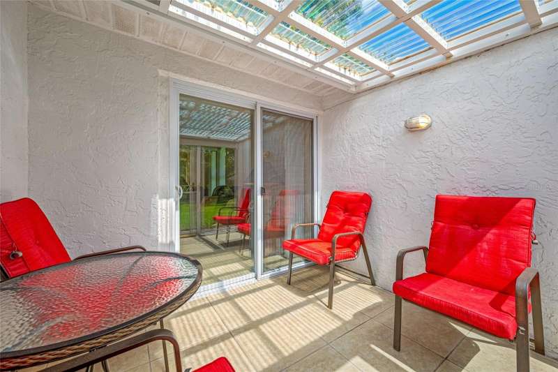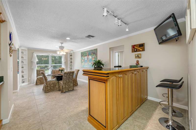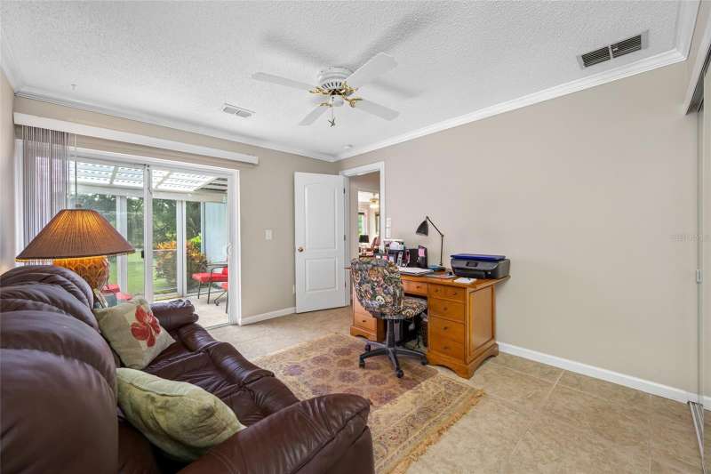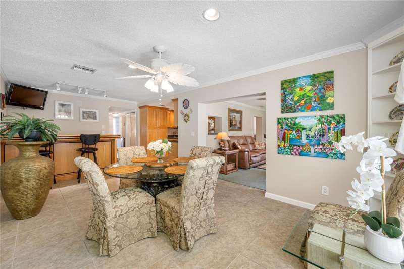 Under contract-accepting backup offers. This updated home offers one of the most stunning views in all of Highland Lakes. Nestled on a conservation lot with no rear neighbors, in a non-flood / non-evacuation zone (Flood Zone X) that offers peace of mind alongside its prime location. This well-appointed 3-bedroom, 2-bath split floor plan includes a 2-car garage and showcases serene, picturesque views. The home is filled with natural light from energy-efficient double-pane windows. The spacious kitchen boasts granite countertops, and solid wood cabinetry with lots of storage space, opening seamlessly to the dry bar —perfect for entertaining with ease. Both bathrooms have been tastefully updated, with the primary bathroom featuring a walk-in shower with glass doors, and a handy washer/dryer closet. Off the third bedroom, which is currently used as office, is a light and bright covered screened-in porch, where you can sit, relax and enjoy the view. Home upgrades include a brand-new electrical panel and water heater (2025), HVAC system (2021) and hurricane shutters for peace of mind. Additional features include a water softener and reverse osmosis system. Highland Lakes Lifestyle - This vibrant 55+ golf community offers an unbeatable array of amenities for just $164/month: • Unlimited golf on three 9-hole courses—no green fees • Heated Olympic-size pool with spa, cabana • Tennis, pickleball, shuffleboard, and Bocce courts • Clubhouse with auditorium, meeting rooms, woodworking shop, and arts & crafts studio Lake Tarpon Lodge Perks - Enjoy access to a second heated pool, open-air patio with grills and tables, boat launch to Lake Tarpon, two community pontoons, and RV/boat storage options—all at the lodge on Lake Side Drive.