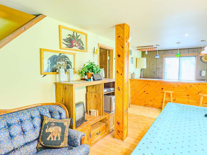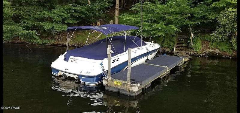 Charming Chalet Retreat at Lake Wallenpaupack! This picturesque Poconos home sits privately nestled on a cul-de-sac road, on over 1 acre of easily maintained, peaceful, wooded property... Featuring a light & lovely open floor plan w/ vaulted ceilings, 3 bedrooms incl. primary w/ en-suite bath, 3 baths total, spacious open kitchen & dining w/ granite counters & island, living room w/ floor to ceiling stone fireplace, finished lower level entertainment room w/ custom wet bar, woodstove, & walk-out access, plus easy access garage w/ plentiful bonus workspace, this quintessential Poconos home offers everything you need. Take in the fresh air, enjoy the serenity of the surrounding nature, and relax outside on the beautifully designed wrap-around deck or down around the firepit w/ friends or family. Lake Wallenpaupack lakefront lot just across the street also available for sale! Offers approx. 80' of lake frontage with DOCK INCLUDED capable of storing TWO 30' boats, and located in a No Wake Zone. Lake Wallenpaupack is the 2nd largest lake in PA, spanning 13+ miles long through 2 counties w/ 5700 acres of surface area, and allows unlimited horsepower boating. This special lake is one of the Poconos most sought after locations, maintaining a natural shoreline for scenic tranquility and providing year round enjoyment from boating, to water skiing, kayaking, fishing, ice fishing, ice skating, and more! Nearby state parks, hiking trails, ski slopes, rivers, waterfalls, shopping, dining, and entertainment also offer you a variety of amenities conveniently close by. Truly a premier location to own your own piece of Poconos Paradise for the perfect vacation destination or year round lake life living! 29' Boat also available for sale, contact listing agent for details.