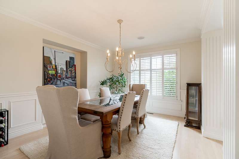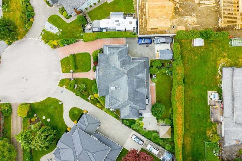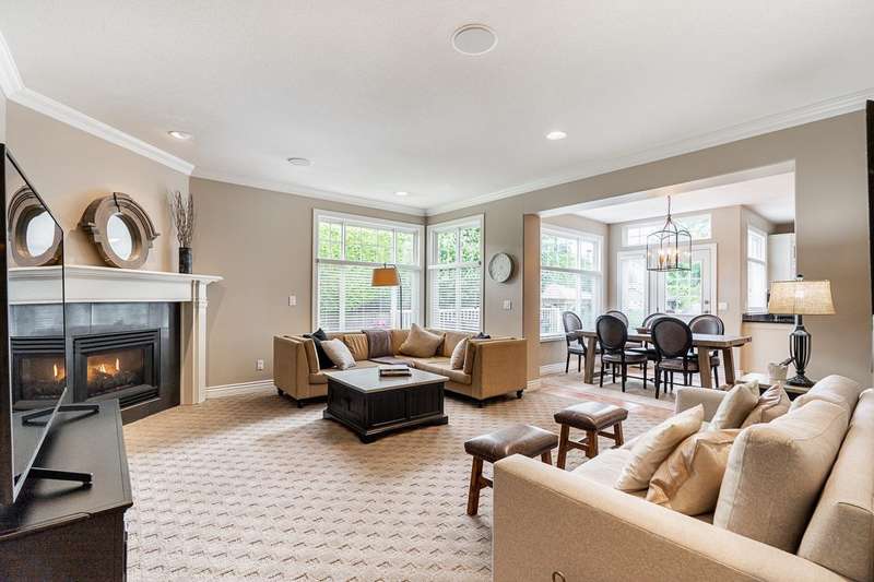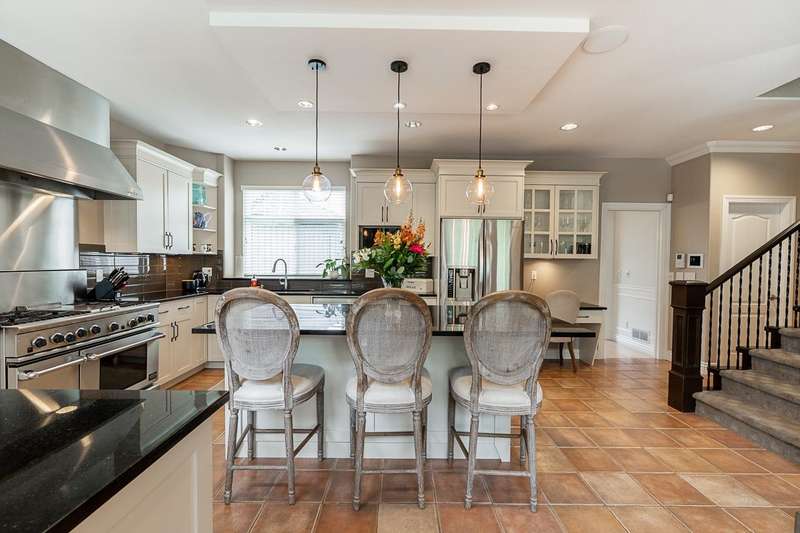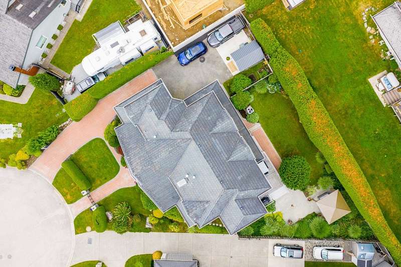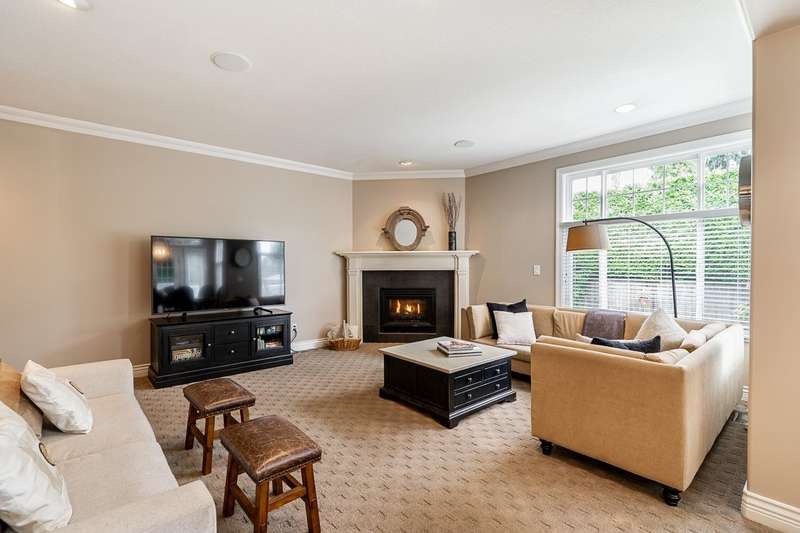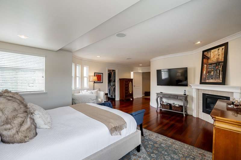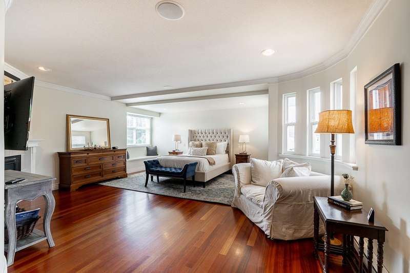 Nestled in the highly sought-after Government Rd area of N. Bby, this stunning luxury home blends timeless elegance w/modern upgrades. Built w/meticulous craftsmanship, it boasts attention to detail. Upstairs offers 4 spacious bedrms, including a primary bdrm w/spa-like ensuite & gas f/p - a perfect retreat. Expansive main flr w/formal dining rm, lovely living room w/ f/p, large den, chef-inspired kitchen w/large island & a family room w/access onto sundeck & private backyard patio. The bsmt impresses w/a media rm, 2 additional bedrms, a Rec rm, & a hobby space w/separate entrance, perfect for guests or in-law suite. Highlights include a double staircase on main, triple attached garage, RV parking, & A/C. Located in a quiet cul de sac location near all Bby amenities. SEE VIDEO !