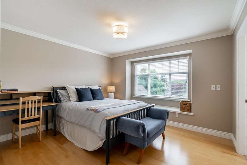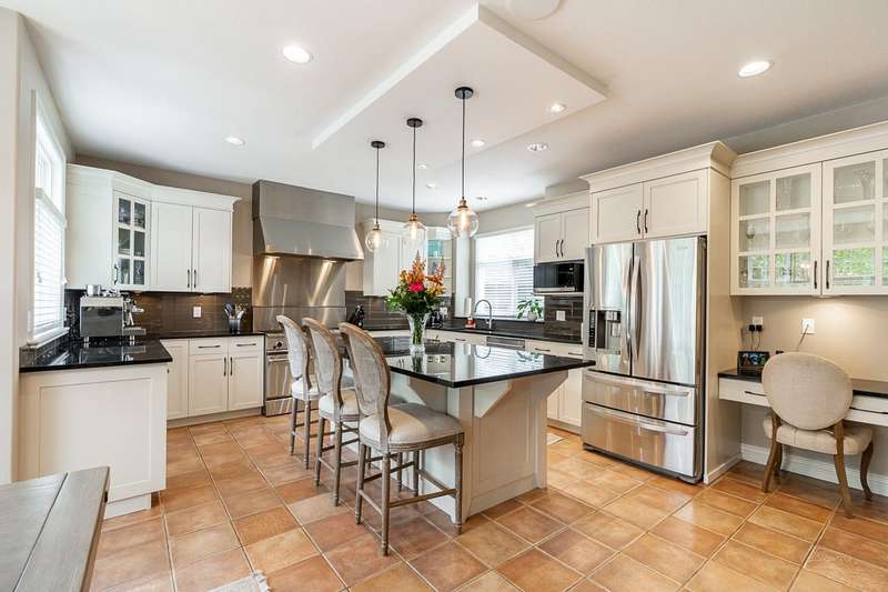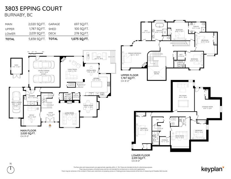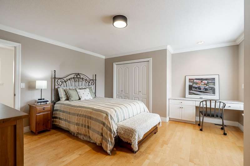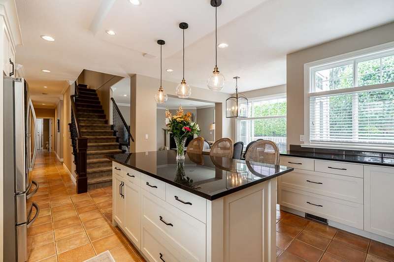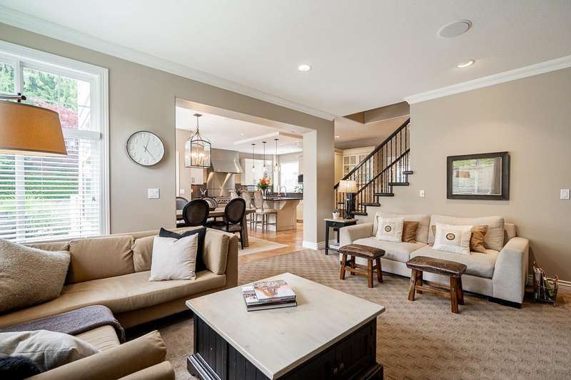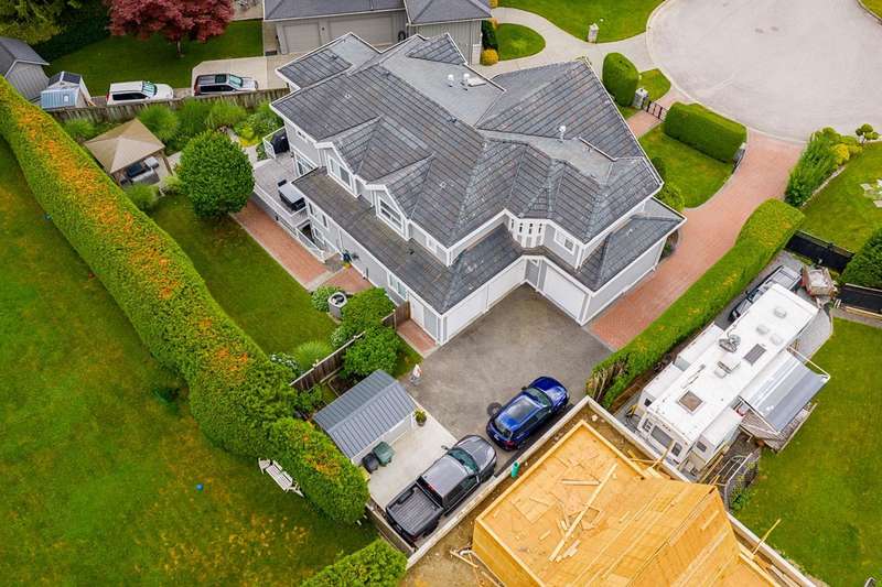 Nestled in the highly sought-after Government Rd area of N. Bby, this stunning luxury home blends timeless elegance w/modern upgrades. Built w/meticulous craftsmanship, it boasts attention to detail. Upstairs offers 4 spacious bedrms, including a primary bdrm w/spa-like ensuite & gas f/p - a perfect retreat. Expansive main flr w/formal dining rm, lovely living room w/ f/p, large den, chef-inspired kitchen w/large island & a family room w/access onto sundeck & private backyard patio. The bsmt impresses w/a media rm, 2 additional bedrms, a Rec rm, & a hobby space w/separate entrance, perfect for guests or in-law suite. Highlights include a double staircase on main, triple attached garage, RV parking, & A/C. Located in a quiet cul de sac location near all Bby amenities. SEE VIDEO !
