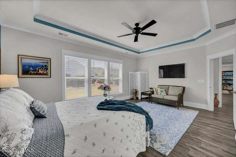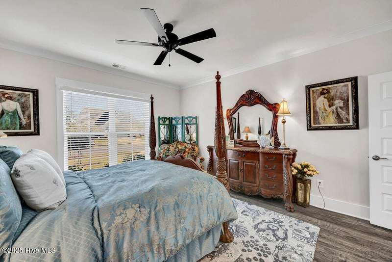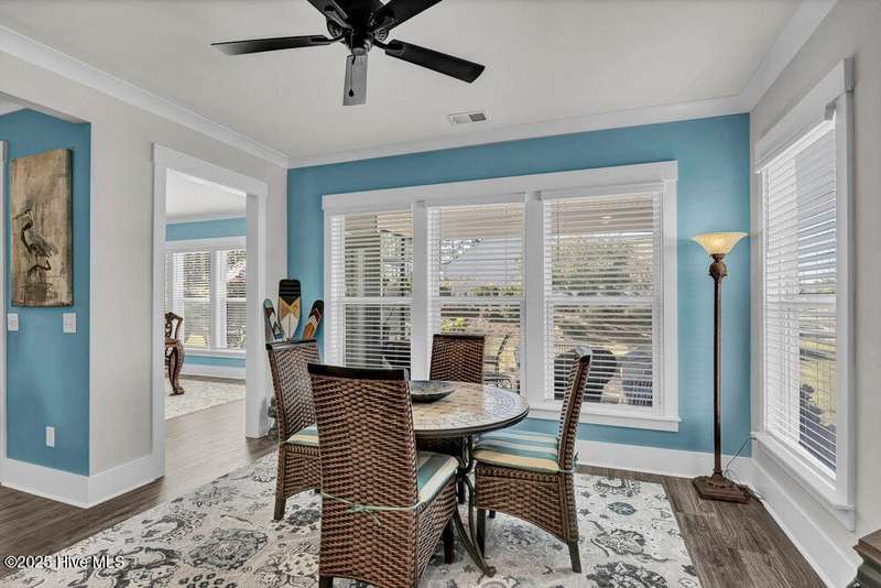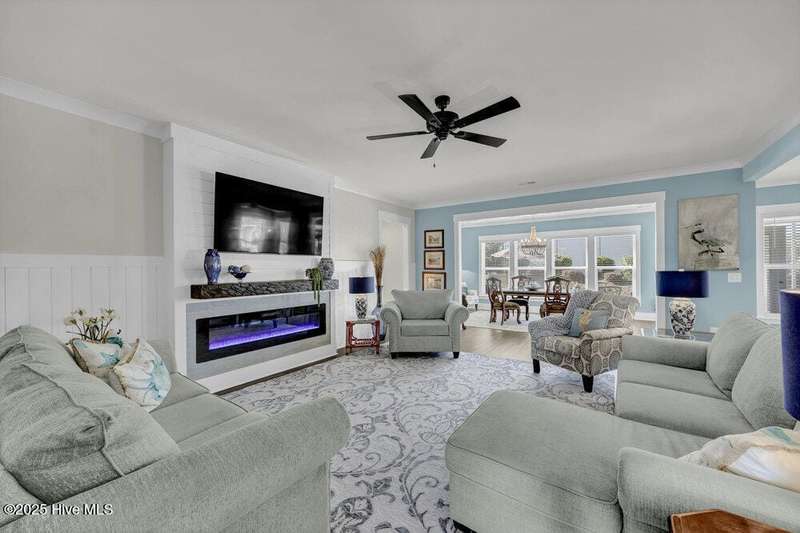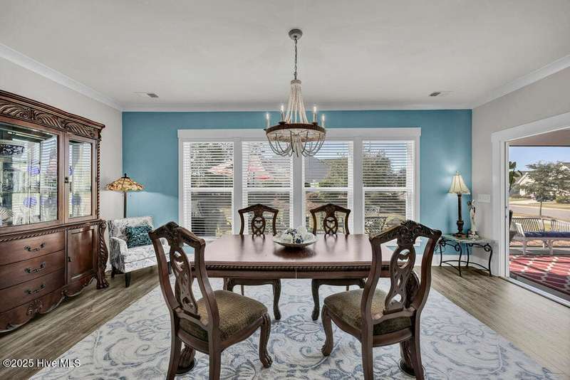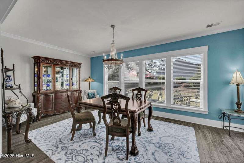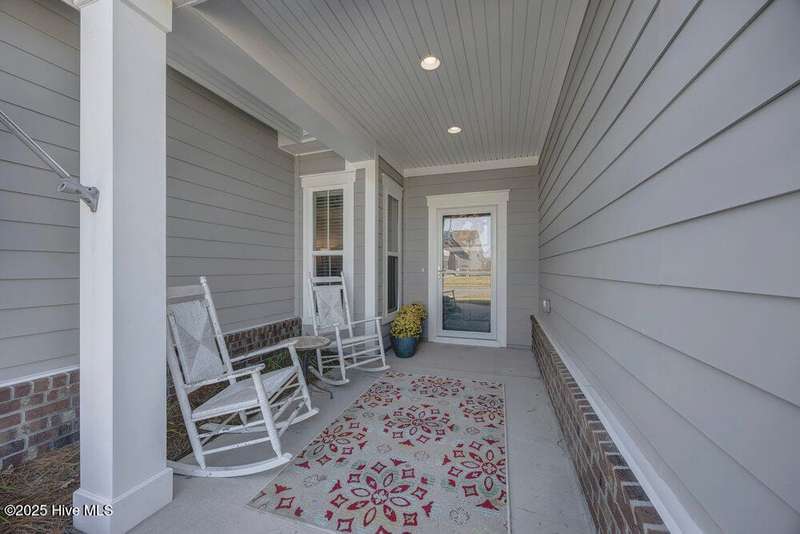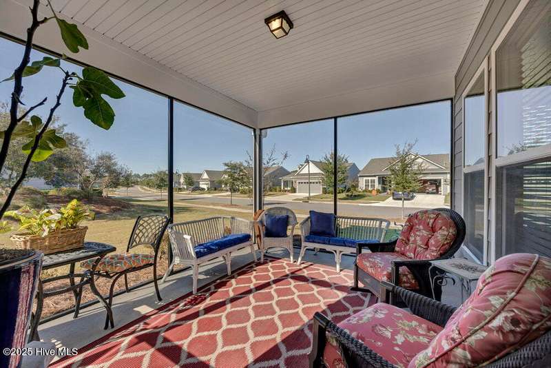 This ''Dunwoody'' is located in the amenity rich of Del Webb 55+ community of RiverLights. The open-concept living space features upgraded details throughout including a custom electric fireplace & mantle, shiplap wainscoting, upgraded premium cabinetry, doors & crown molding. The Gourmet Kitchen has beautifully designed custom tiled back-splash, a porcelain farmhouse sink, and stainless steel, Kitchen-Aid appliances. A built-in microwave/oven wall unit, large pantry, & custom pendant lighting complete this dream kitchen. The home features 3 bedrooms and 3 full baths all on one level, along with a transom French-door Flex Room. Designer lighting, ceiling fans, window blinds, and engineered wood floors run throughout the main livingareas, with tile in the bathrooms.The Primary En-suite bath offers a spa-like experience with a ''Zero Entry'' walk-in rain-head shower and a largecloset system. The Drop-Zone/Laundry Room connects to the garage with additional golf cart parking, providing the perfect space for your golf cart or workshop. The sun room, plus a spacious covered screened Lani overlooks your private backyard, where entertaining or relaxing make this home's indoor-outdoor flow inviting. Situated on a premium corner lot with enhanced landscaping, maintained by the HOA for easy living, includes an integrated sprinkler system. The Del Webb community in RiverLights, offers unparalleled resort-style amenities: indoor saltwater pool, outdoor pool, hot tub, fire pit, pickle-ball, tennis, and Bocci ball courts, plus numerous clubs and activities. Take in the 3+ mile walking / biking path around the lake or take a short drive or bike ride toMarina Village on the Cape Fear River, where you'll find shops, restaurants & breathtaking sunsets. Come see what you have been missing!