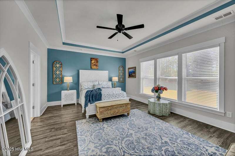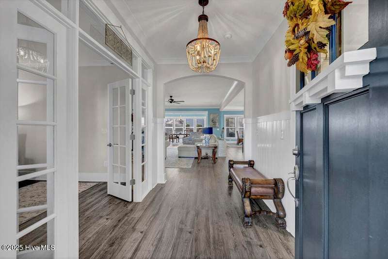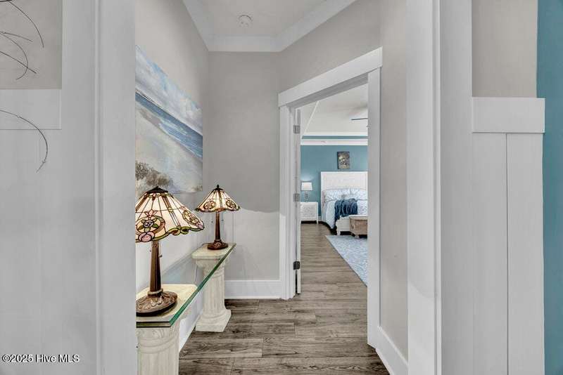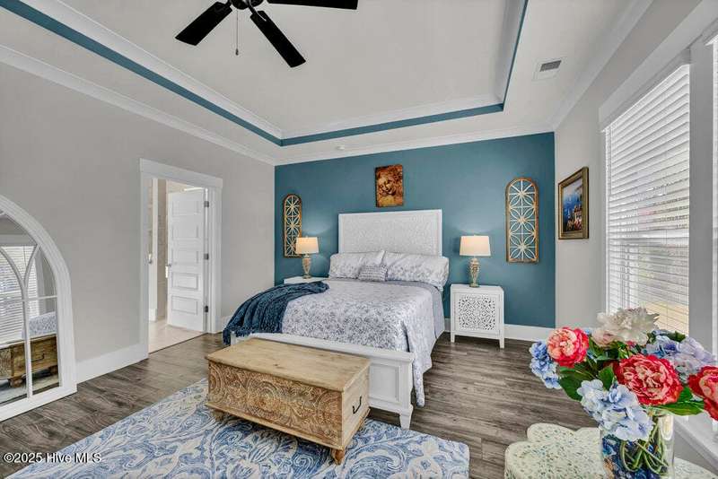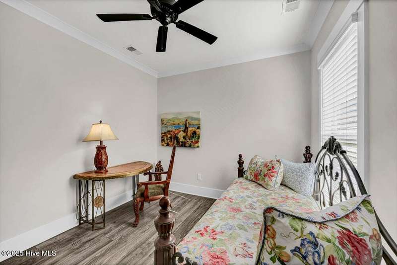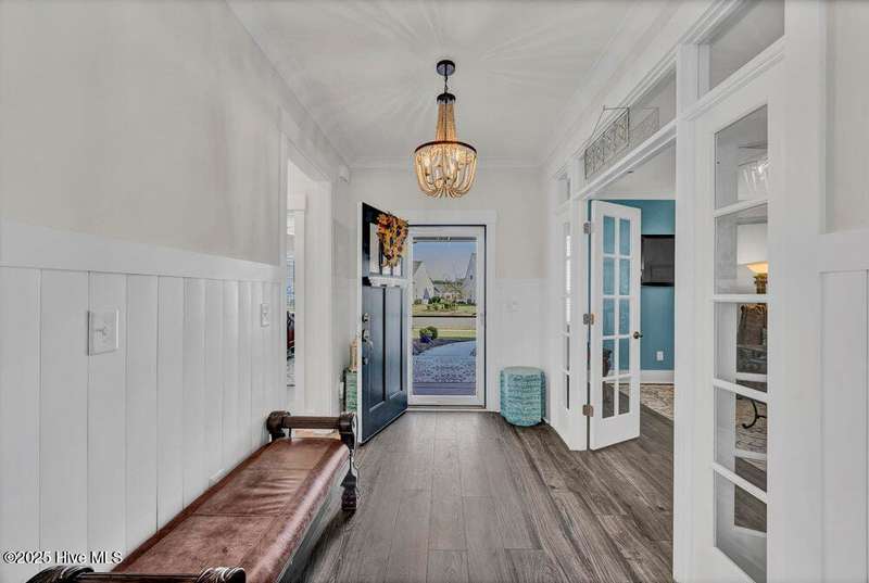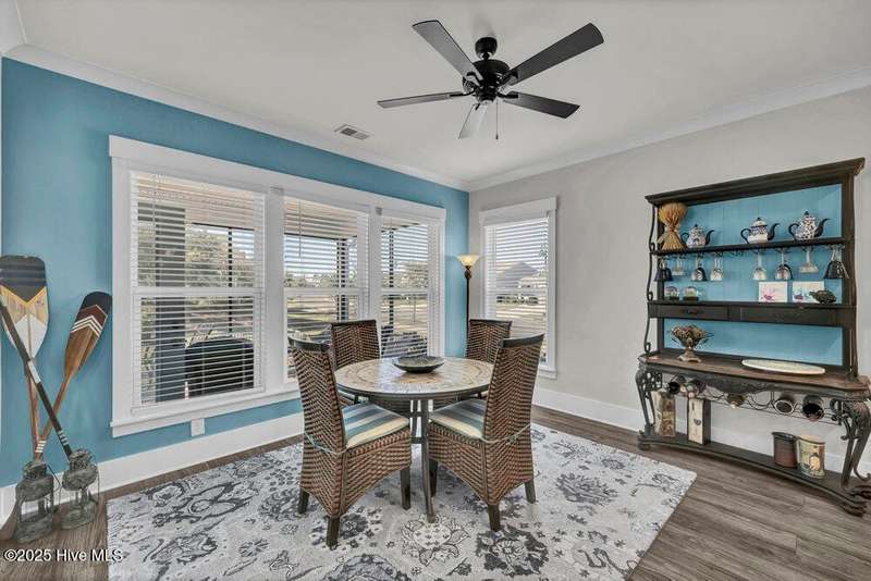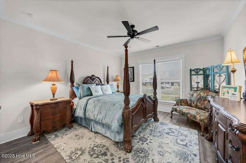 This ''Dunwoody'' is located in the amenity rich of Del Webb 55+ community of RiverLights. The open-concept living space features upgraded details throughout including a custom electric fireplace & mantle, shiplap wainscoting, upgraded premium cabinetry, doors & crown molding. The Gourmet Kitchen has beautifully designed custom tiled back-splash, a porcelain farmhouse sink, and stainless steel, Kitchen-Aid appliances. A built-in microwave/oven wall unit, large pantry, & custom pendant lighting complete this dream kitchen. The home features 3 bedrooms and 3 full baths all on one level, along with a transom French-door Flex Room. Designer lighting, ceiling fans, window blinds, and engineered wood floors run throughout the main livingareas, with tile in the bathrooms.The Primary En-suite bath offers a spa-like experience with a ''Zero Entry'' walk-in rain-head shower and a largecloset system. The Drop-Zone/Laundry Room connects to the garage with additional golf cart parking, providing the perfect space for your golf cart or workshop. The sun room, plus a spacious covered screened Lani overlooks your private backyard, where entertaining or relaxing make this home's indoor-outdoor flow inviting. Situated on a premium corner lot with enhanced landscaping, maintained by the HOA for easy living, includes an integrated sprinkler system. The Del Webb community in RiverLights, offers unparalleled resort-style amenities: indoor saltwater pool, outdoor pool, hot tub, fire pit, pickle-ball, tennis, and Bocci ball courts, plus numerous clubs and activities. Take in the 3+ mile walking / biking path around the lake or take a short drive or bike ride toMarina Village on the Cape Fear River, where you'll find shops, restaurants & breathtaking sunsets. Come see what you have been missing!