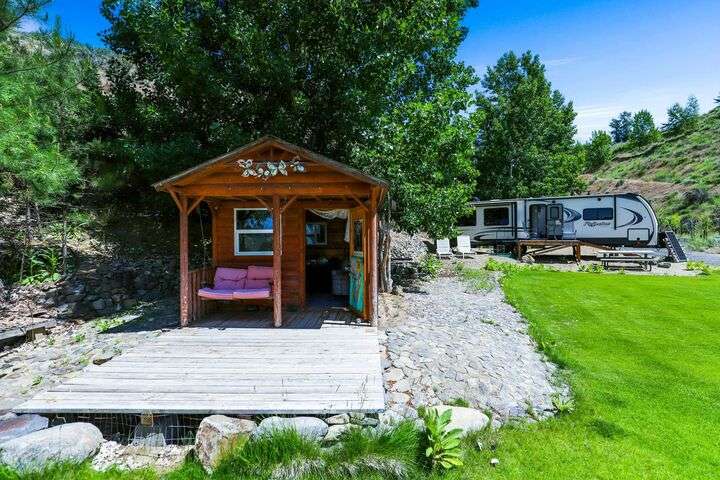 10 minutes to Fort Spokane Public Beach and 7 Bays Marina! Set on 6.25 peaceful acres with sweeping Lake Roosevelt views, this property offers privacy and room to build. Multiple view sites plus ready-to-go infrastructure: community water system, power on site, 2-bedroom approved septic, 400-amp service panel, numerous spigots, and drip irrigation for 500+ hand-planted trees. A 30×40 shop (overhead door, loft) with 14' lean-to anchors the property, along with a newer 20×24 outbuilding, two sheds, and a bunkhouse. Extras include a chipping/putting green, solar power, and a covered 24' (1989) RV for flexible use. Schedule your showing today!