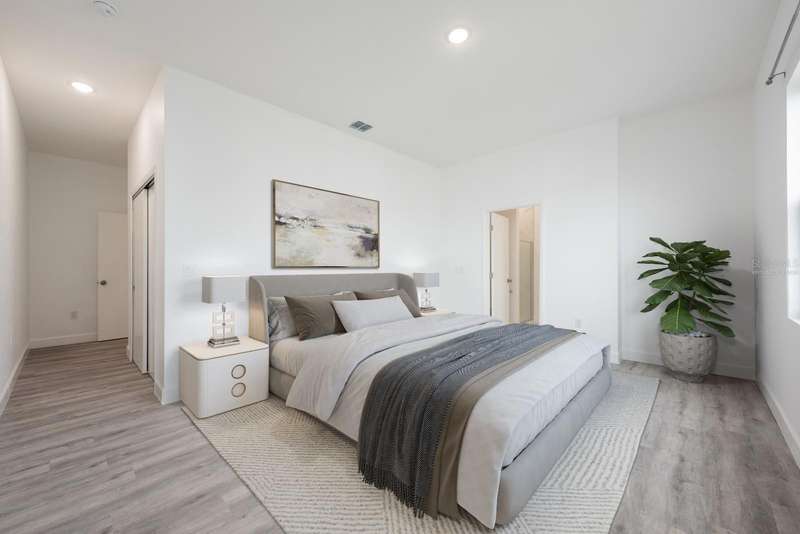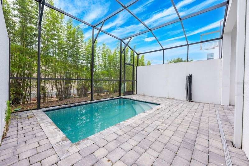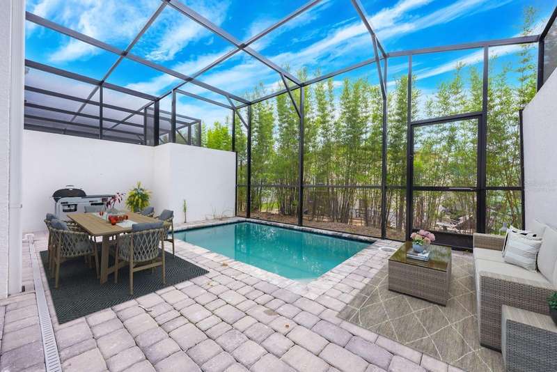 Under contract-accepting backup offers. One or more photo(s) has been virtually staged. Welcome to RESORT-STYLE LIVING in this nearly NEW, never lived in 5-bedroom, 4-bathroom corner-unit townhome located in the modern and vibrant Azur Resort community of Davenport. Built in 2023 and boasting over 2,000 SQUARE FEET of sleek, contemporary design, this beautifully appointed home offers flexibility as a primary residence, vacation retreat, or income-generating short- or long-term rental. An OPEN FLOOR PLAN allows for effortless movement between the Living and Dining areas, as well as the Kitchen. With TWO SPACIOUS PRIMARY SUITES—one on the main floor, each with a private en suite bathroom—and luxury vinyl plank flooring throughout the main living areas and bedrooms, comfort and style come standard. Enjoy your own PRIVATE SCREENED LANAI with a SPARKLING POOL, perfect for relaxing or entertaining in the Florida sunshine. The Azur Resort pampers residents and guests alike with UPSCALE AMENITIES including a modern clubhouse, community pool and fitness facility. Just twenty minutes from Walt Disney World and surrounded by renowned golf courses, shopping, and dining, this location offers the perfect balance of excitement and convenience. NEARBY ACCESS to I-4, US-27, and SR-429 makes commuting and exploring Central Florida a breeze, with quick trips to Universal Studios, Margaritaville, Posner Park, ChampionsGate, and Orlando International Airport all within reach. Whether you're looking to invest or enjoy the Florida lifestyle year-round, this AZUR RESORT GEM is an incredible opportunity waiting to be yours. Don’t miss your chance to own this modern townhome in the heart of Florida’s vacation paradise!