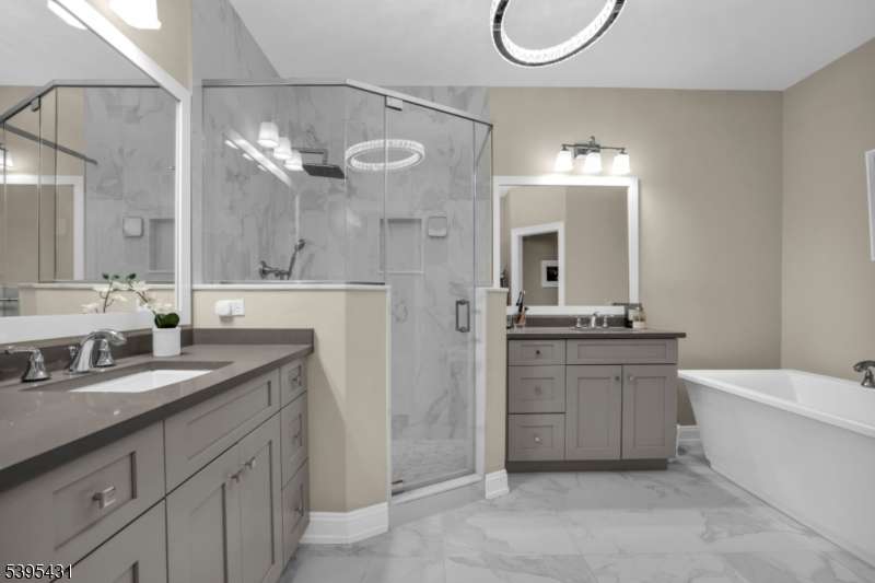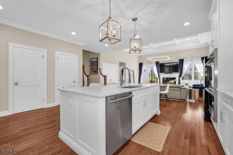 A rare opportunity to own a fabulous luxury townhome style condominium in the sought after Warren Crossing Development featuring a transferable 30 year tax abatement program that provides you w/ a yearly tax savings of approx. 45%! This Denali model w/first floor primary suite is situated on a cul de sac street and has a private rear yard w/a tree lined patio. On the main level, an oversized "Great Room w/soaring 18ft coffered ceilings, gas fireplace and a wall of windows is the central gathering place when entertaining. A nearby gourmet designer kitchen features a large center island with gorgeous quartz countertops, high end Viking appliances,Bosch dishwasher,sleek glass backsplash, under cabinet lighting and a sizable pantry. A spacious formal dining room, powder room, several closets and convenient laundry room with lots of extra cabinetry can also be found on this level. The 2nd floor boasts 2 generous sized bedrooms, a main bath and a beautifully finished off bonus room with closets that would make a nice office, playroom or leisure space. An unfinished storage area is close by. The massive basement with high ceilings that has already been sheetrocked is just waiting for its new owner to complete it. ( Pool table included) 2 car garage with lots of storage cabinetry and an epoxy finished floor. Just across the street is a path that leads to East County Park w/walking trails and a doggy park. Within minutes to Rt 78 ,a "Park and Ride?, an express commuter bus to NYC.