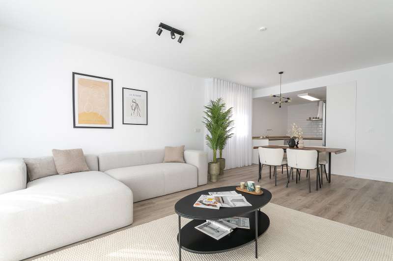 These enticing apartments for sale in Alicante are part of a contemporary compound consisting of 120 apartments. The compound showcases remarkable communal areas, featuring two pools—one designed for adults and another thoughtfully equipped with a playground zone for children. The expansive green spaces within the compound provide an inviting environment to embrace the pleasant climate. Each apartment includes a personal storage room and an indoor parking space, thoughtfully preinstalled with an electric car charging point.