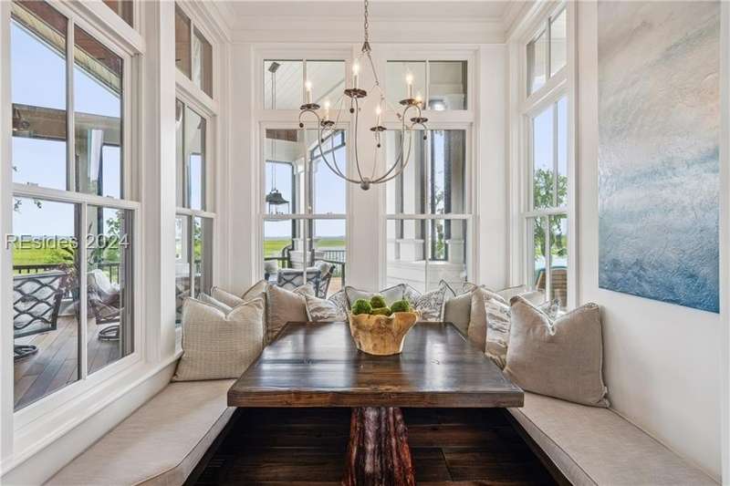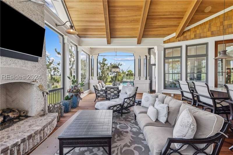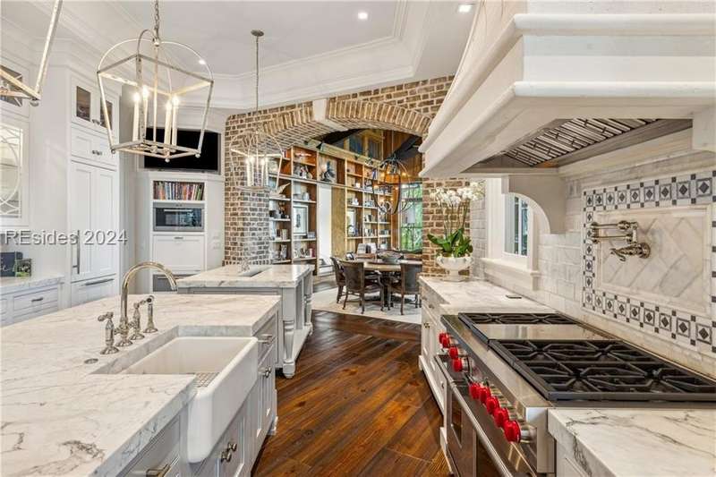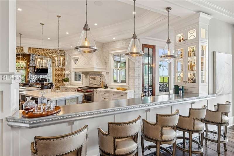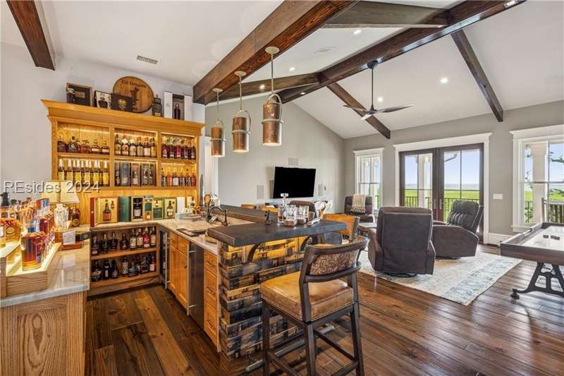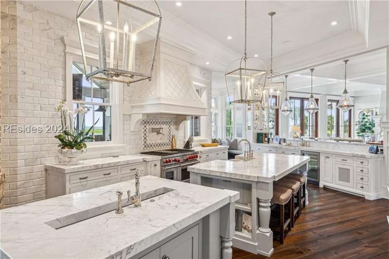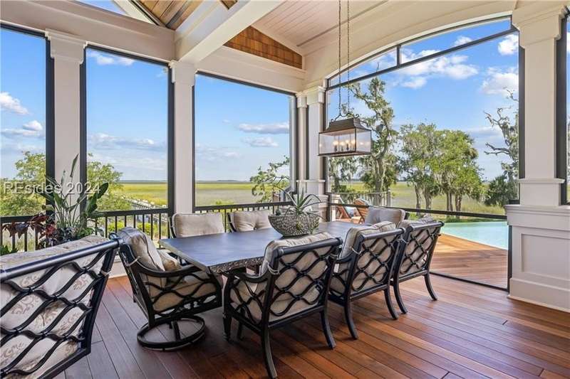 Tucked on nearly 1.5 acres and 180 degrees of pristine marshes, this nearly 8000 square foot custom home offers an unrivaled fusion of craftsmanship, luxury, & natural beauty. The gourmet kitchen includes two spacious islands topped with leathered marble, Wolf & Subzero appliances & a 16 foot pewter bar. A 1000 bottle wine room, upstairs bourbon bar & outdoor kitchen & bar on the screen porch are just a few of the extras that call for intimate or casual entertaining. Includes a 4 car garage with cart bay attached along with a fabulous pool & hot tub that are surrounded by Ipe decking overlooking the marshes & your own private dock.