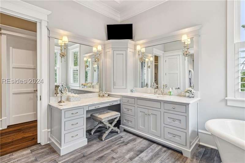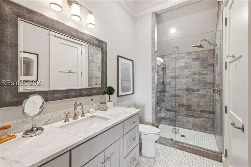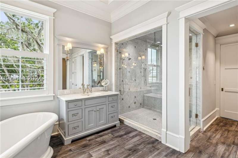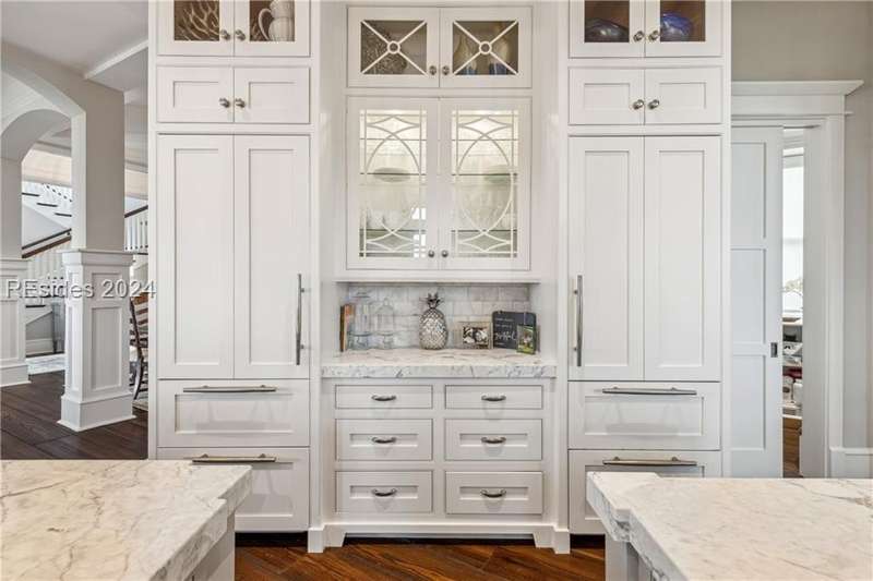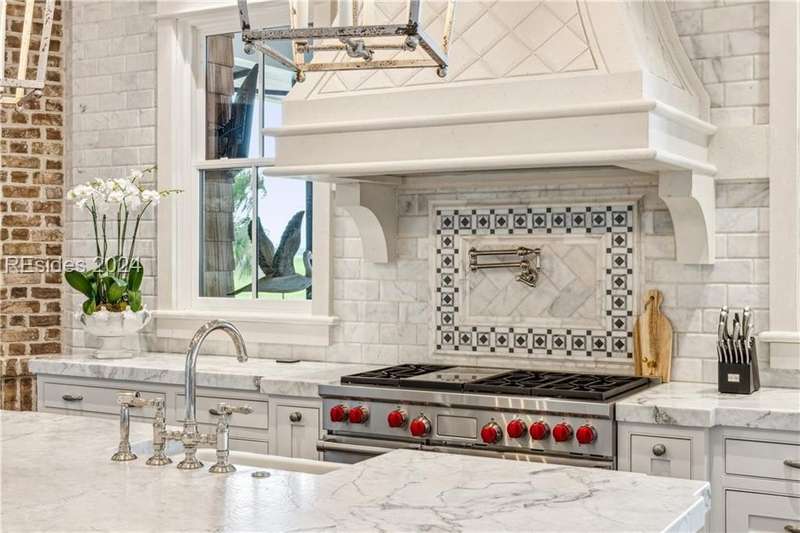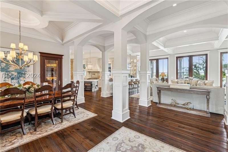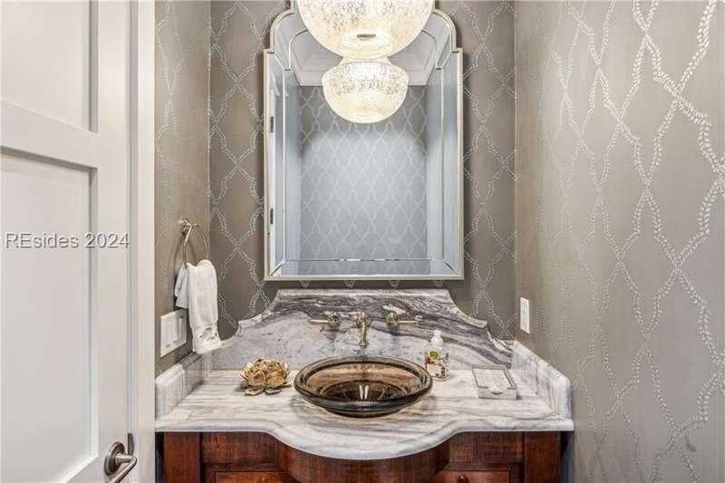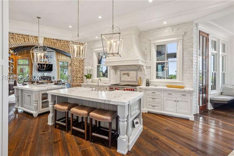 Tucked on nearly 1.5 acres and 180 degrees of pristine marshes, this nearly 8000 square foot custom home offers an unrivaled fusion of craftsmanship, luxury, & natural beauty. The gourmet kitchen includes two spacious islands topped with leathered marble, Wolf & Subzero appliances & a 16 foot pewter bar. A 1000 bottle wine room, upstairs bourbon bar & outdoor kitchen & bar on the screen porch are just a few of the extras that call for intimate or casual entertaining. Includes a 4 car garage with cart bay attached along with a fabulous pool & hot tub that are surrounded by Ipe decking overlooking the marshes & your own private dock.