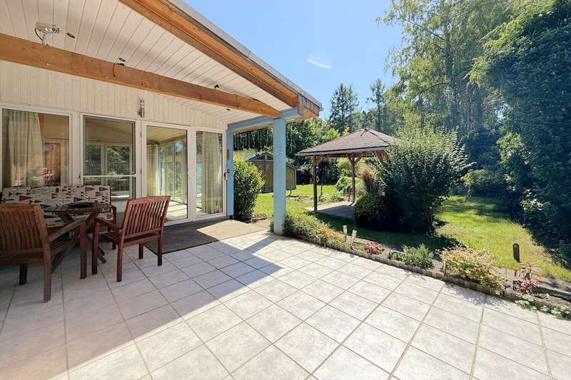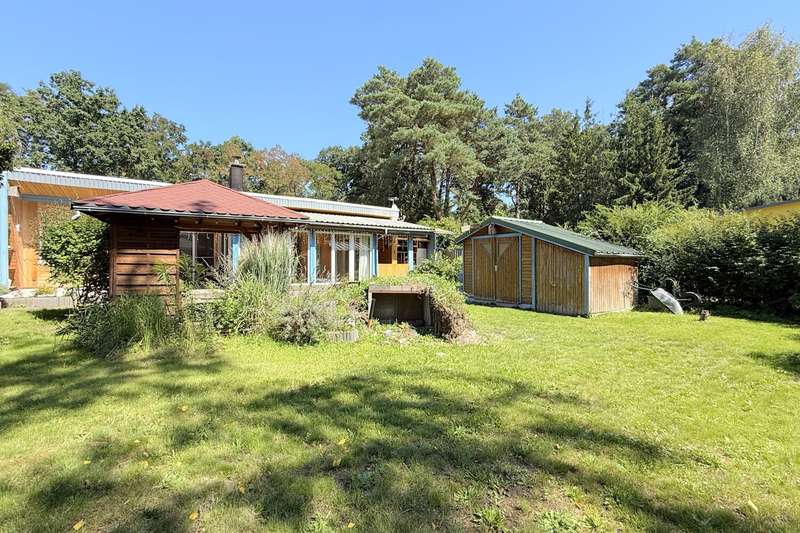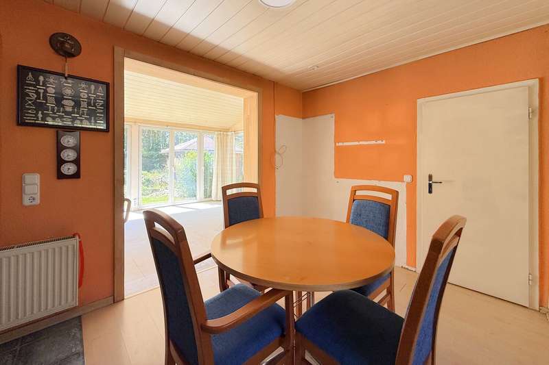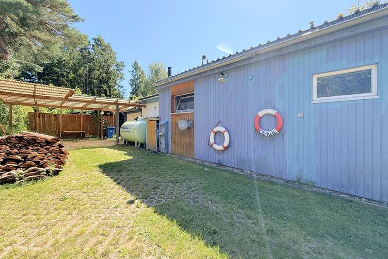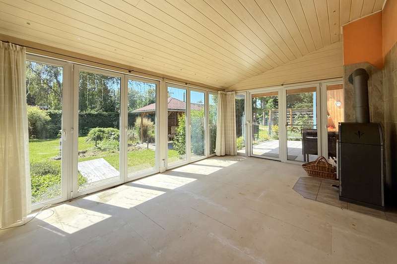 Welcome to your very own personal retreat: this well-kept vacation bungalow, originally built around 1972 and extensively renovated in 2008, combines nostalgic charm with modern comfort. Four friendly rooms await you on around 82 m² of living space, which can be used in a variety of ways. At the heart of the house is the bright conservatory, which also serves as a spacious living area. Thanks to the floor-to-ceiling windows, you can enjoy the view of the greenery here at any time of year - and the cozy fireplace provides pleasant warmth and an inviting atmosphere. The open kitchen blends in harmoniously and creates the ideal place for cooking together and socializing in the evenings. The bathroom with shower has modern fittings and bright rooms enhance the feeling of lightness and security. The house is heated by an efficient gas condensing boiler via a liquid gas tank, while a private well ensures the water supply. The approx. 547 m² plot offers plenty of space for relaxation and development: a large veranda, a covered terrace, a lovingly tended garden with a pavilion as well as practical additions such as a tool shed, a garage, a double carport and a separate workshop. This is exclusively a vacation home - use as a main residence is not possible. Just 100 meters from the idyllic Klostersee lake, you will find a retreat that combines tranquillity, closeness to nature and inspiration. The communal boat mooring offers you the opportunity to moor your own boat directly on the shore of the Klostersee. Note: Once you have completed your contact details, the brochure will be sent to you automatically. Please contact us for further information and a viewing appointment. To get an impression of the property, we cordially invite you to take our virtual 3D tour.