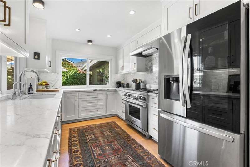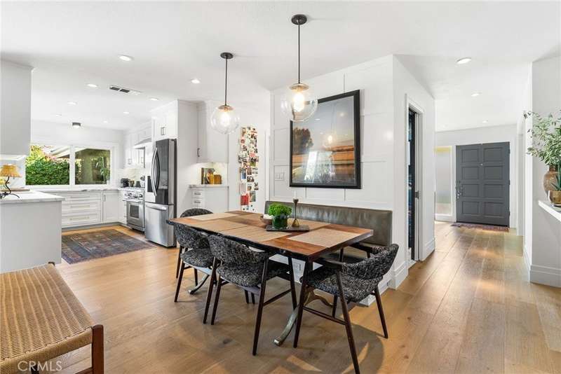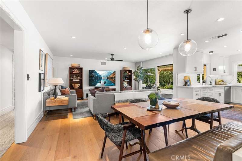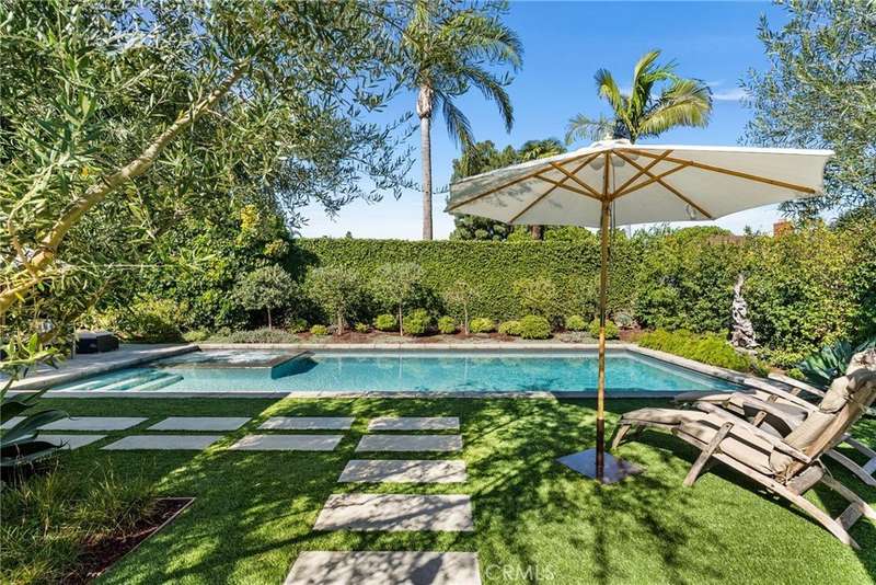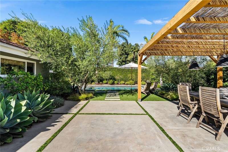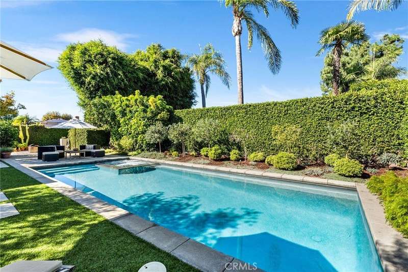 Step into your dream home — a single-story showpiece offering 2,330 square feet of designer living on a 10,375-square-foot flat lot in one of Tustin’s most desirable neighborhoods. This move-in-ready single-story blends modern sophistication with a fun mid-century vibe and even offers room for future expansion. Inside, discover bright open spaces with designer finishes throughout — from the warm wood floors to the statement lighting and marble accents. The bright living room with a chic fireplace and dining area overlooking the front garden set the tone for effortless, elevated living. The gourmet remodeled kitchen impresses with custom cabinetry, marble counters, a 6-burner Wolf range and oven, stainless appliances, and a sleek pass-through window that opens to the entertainer’s backyard. The kitchen flows seamlessly into the inviting family room with a built-in banquette, perfect for casual dining or cozy gatherings. Three generous bedrooms and 2.5 spa-inspired bathrooms shine with the latest designer details. The primary bedroom complete with a walk-in closet and new glass patio doors open to your backyard oasis remodeled within the last five years. The professionally landscaped entertainer’s paradise features a sparkling pool and spa, multiple patios, a fire pit lounge, and a versatile side yard flex space. Whether you’re hosting a dinner party or a weekend poolside hangout, this yard delivers space, style, and privacy. Bonus features include an indoor laundry room, 3 car garage with direct access, and top-rated Tustin schools including Foothill high school. Welcome home to California living at its finest.