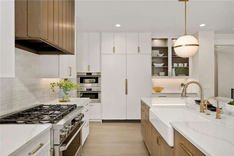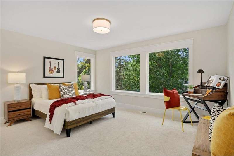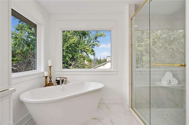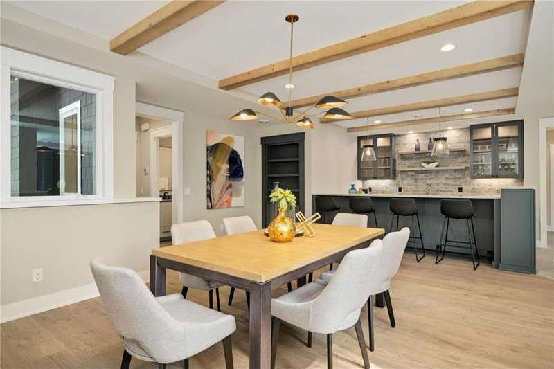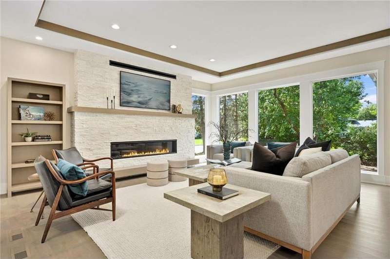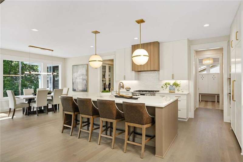 This stunning Wooddale Builders home offers exceptional design and craftsmanship in the heart of Edina. The main level features a light-filled great room with walls of windows and a gourmet center island kitchen with a walk-through pantry. Four bedrooms sit upstairs, including a luxurious owner’s suite with a spa-inspired bath and walk-in shower. The inviting three-season porch—with fireplace, shiplap detailing, retractable windows, and a barn wood ceiling with beams—creates the perfect year-round retreat. The finished lower level includes a walk-behind bar and Wooddale’s signature hidden doors, ideal for entertaining. Additional highlights include a three-car heated garage with epoxy floors, welcoming front porch, and spacious back deck overlooking a beautiful yard. Blending luxury, comfort, and timeless style, this home exemplifies Edina living at its best.
