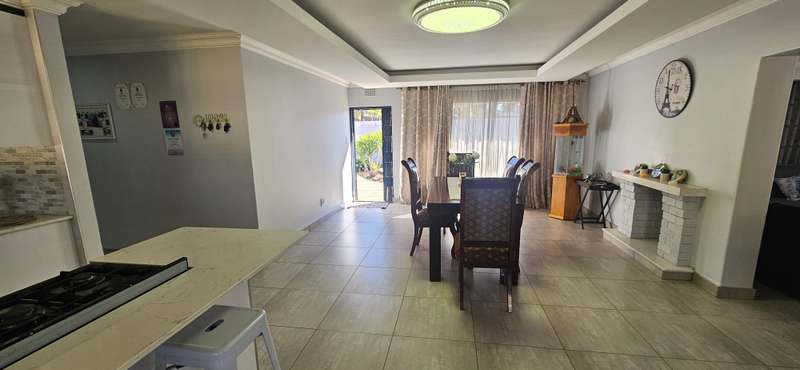 This beautiful home features a large open plan lounge, dining room and a modern kitchen with a gas stove, ample cupboards and space for appliances. There are 3 good sized bedrooms with built in cupboards and 2 modern bathrooms. The garden is very spacious with a pool and there is plenty open parking space. Well secured and close to main roads, shopping centres, schools and much much more...Make an offer today!!!