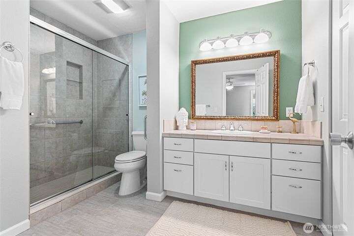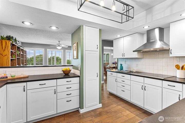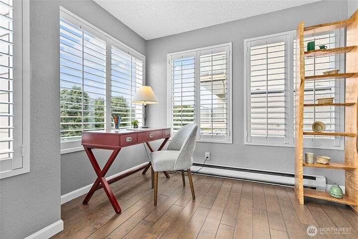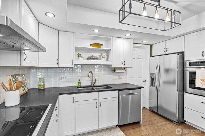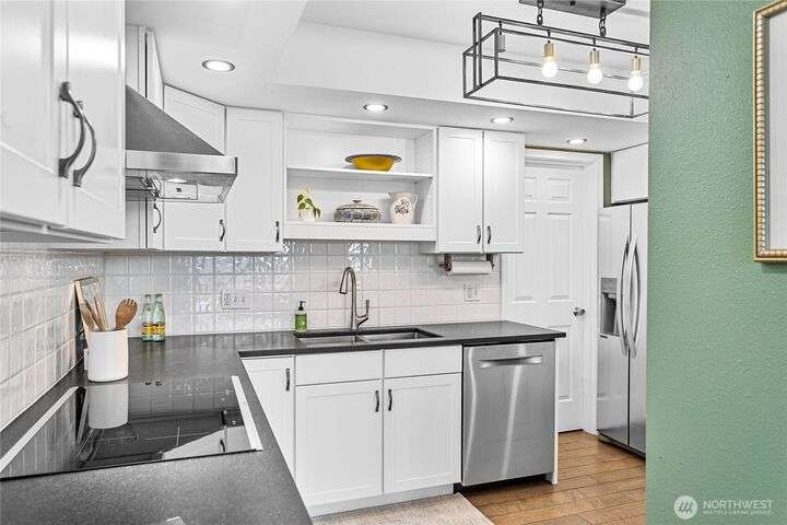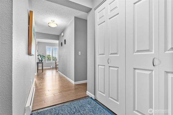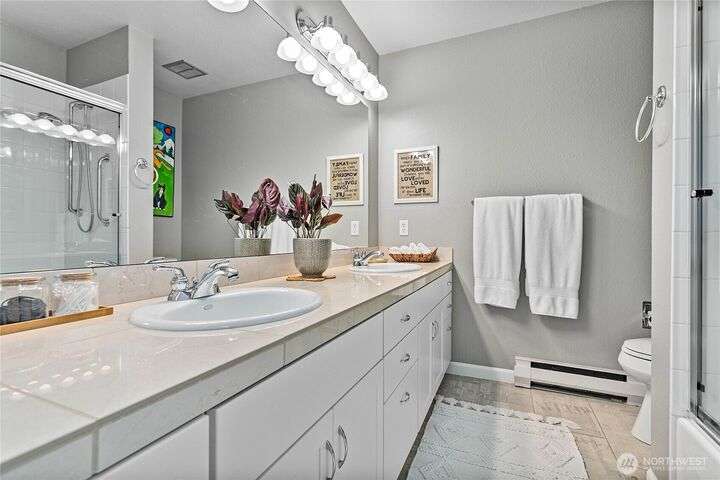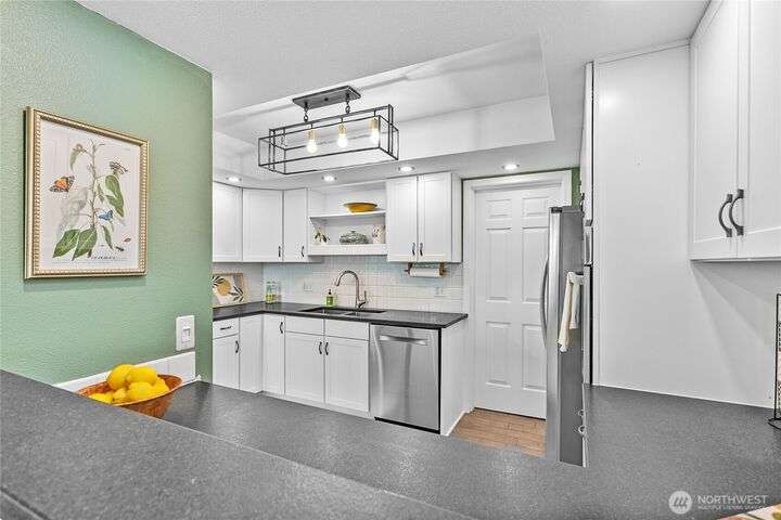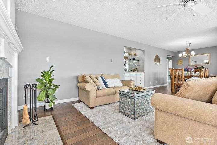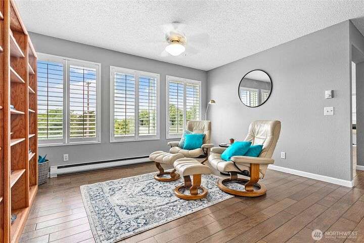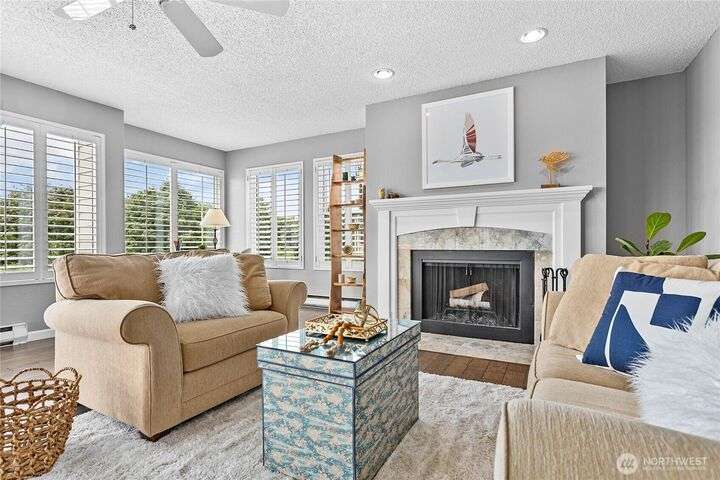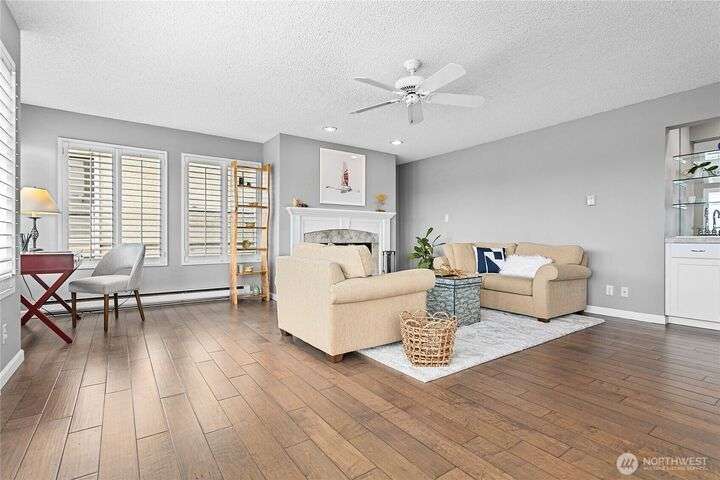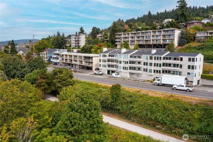 Light and bright Exquisite South Hill completely remodeled luxury corner 2 bedroom and 2 bath condo, approx. 1,700 sf. Perfect setting for entertaining. views of the Bay, City, Harbor, Islands & Mountains. Gorgeous kitchen, pantry and nook. Living room with fireplace wood-burning. Dining room. Primary with oversized vanity and large tiled shower. Covered large deck. Secure parking plus elevator. Directly across street is the waterfront Bay to Baker trail leading to Boulevard Park, Taylor Dock, Fairhaven, Downtown and the approved site for new Salish Landing waterfront Park.
