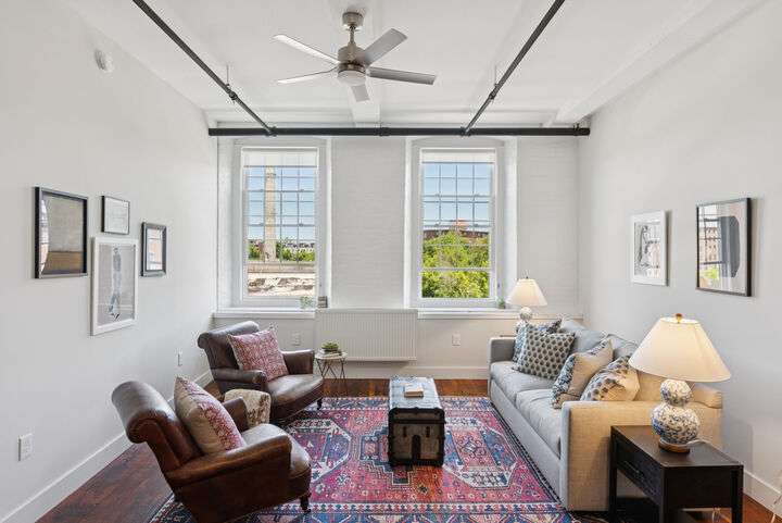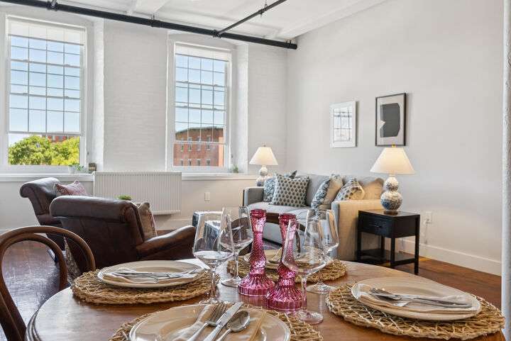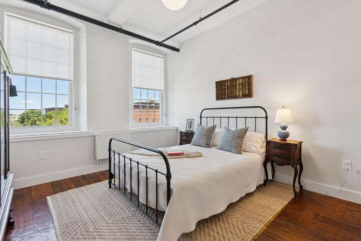 Welcome home to this spacious two-bedroom condo with stunning Saco River views in the vibrant Pepperell Mill Campus of Biddeford, Maine. Set within a landmark riverside mill complex reimagined for modern living, this standout unit immediately impresses with its exceptional layout and breathtaking water views. Historic charm shines through high ceilings, exposed brick and beams, antique maple hardwood floors, and expansive windows that fill the home with natural light and warmth. The thoughtfully designed kitchen features granite countertops, stainless steel appliances, ample cabinetry, and updated lighting. An open-concept layout allows for seamless flow while still offering defined areas for relaxing, cooking, and entertaining. The highly desirable split-bedroom floorplan provides privacy, with bedrooms located on separate sides of the condo—ideal for guests, roommates, or a home office setup. Living in Biddeford means joining a dynamic, growing community. Once powered by the Saco River's historic mills, Biddeford has transformed into one of Maine's most exciting creative hubs. The Pepperell Mill community is home to residents, artists, entrepreneurs, and local businesses, all contributing to a strong sense of connection. Just 20 minutes from Portland, Maine, and a short walk to the Saco Transportation Center with daily Amtrak service to Boston, this 17-acre campus offers exceptional convenience. Residents enjoy low HOA fees (internet included), solar energy, a designated parking space, a dog park and wash station, grilling areas, bike storage, and EV charging—everything you need for modern, sustainable living. Biddeford offers the perfect blend of small-town charm and big-city energy, with award-winning restaurants, coffee shops, breweries, and bakeries earning recognition throughout the Northeast. This condo is an ideal opportunity to live vibrantly, creatively, and connected along the Saco River.