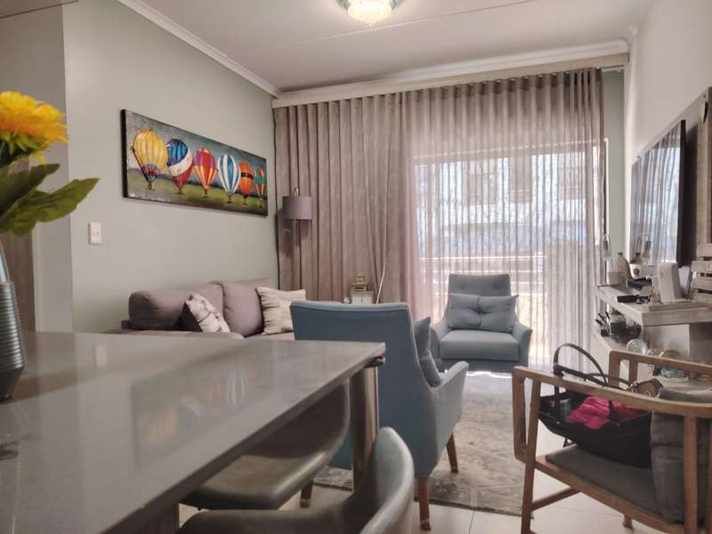 This elegant two-bedroom, two-bathroom ground-floor apartment offers the perfect blend of charm and modern elegance. The apartment is ideally suited for a lock-up-and-go lifestyle in a prime location. As you step into the apartment, you’ll immediately appreciate the smooth transition from the kitchen to the lounge and out onto the patio. This space is perfectly designed for hosting guests or enjoying quiet, relaxing evenings at home. The kitchen boasts modern features, including a gas stove, oven, ample cupboard and counter space, and room for all your appliances. Its open-plan design allows you to entertain while preparing meals. The main bedroom, with its en-suite bathroom, is tastefully finished, creating a private and comfortable atmosphere for restful nights. The second bedroom offers versatility, ideal for use as a home office or guest room; the rooms are designed with adequate built-in cupboards for ample storage. The second bathroom is conveniently located for guests. The apartment has pre-paid electricity installed and is fibre ready. There is one undercover parking bay allocated to the unit. The communal swimming pool and clubhouse are perfectly designed for relaxation and socializing and have facilities for hosting functions and events. The complex’s communal gardens provide a serene setting for evening walks and leisure activities. With excellent security features, you can rest easy knowing your home offers peace of mind. With easy access to local amenities such as shopping centers, parks, and major transportation routes, this apartment is the ideal choice for those seeking both style and convenience. Contact me today to schedule a viewing and experience the ultimate urban lifestyle this apartment offers! Disclaimer: Whilst every care has been taken in the preparation of this listing, we cannot be held responsible for any errors or omissions that may occur.