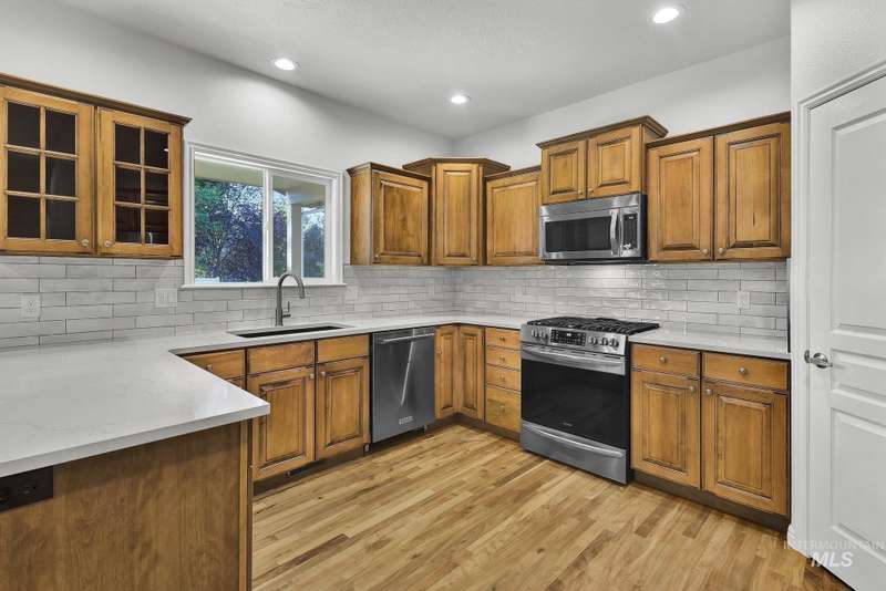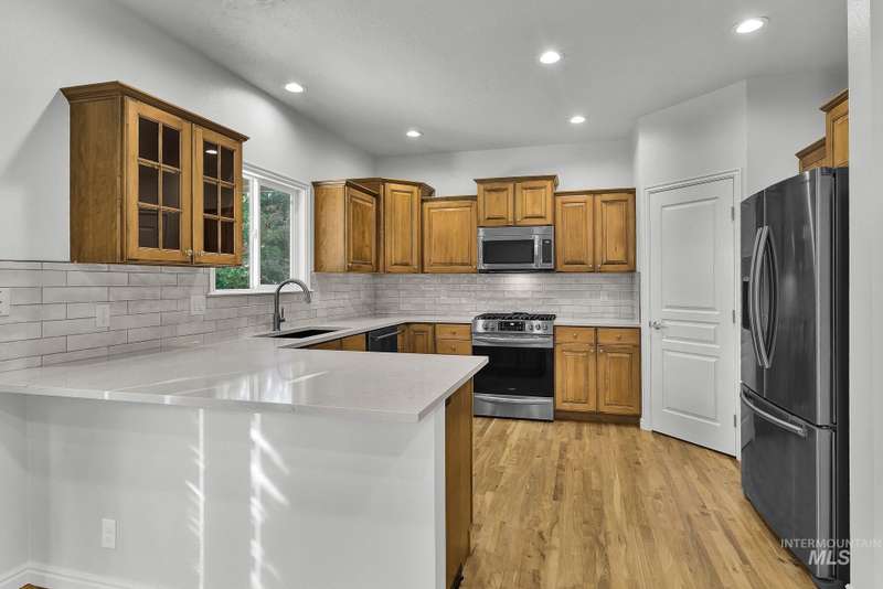 Unbeatable location less than 1 mile from downtown Eagle. Quiet, greenbelt-like setting with 5 miles of walking paths in nearby Eagle Island Park. This home offers private mother-in-law quarters and the home has been completely remodeled/refreshed, with a huge, private lot w/ mature landscaping, and adjoins a large common area with a basketball court in the distance. Some photos have been virtually staged; please see the Docs tab for full list of updates.