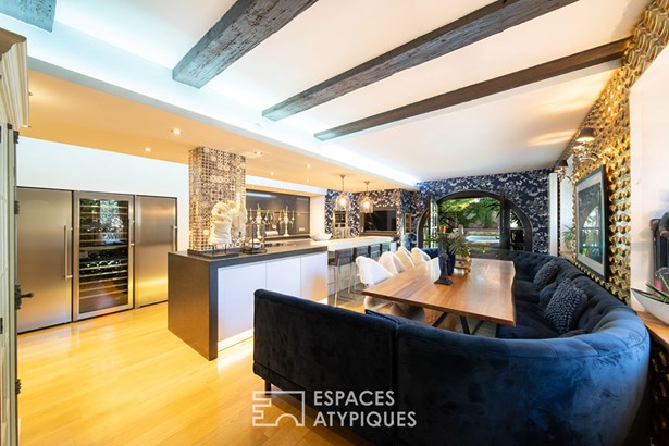 The interior of this character house is spread over several levels, connected by a lift. The basement, formerly a wine-making cellar, has been transformed into a bright games room with a mezzanine and wine cellar. The ground floor comprises a welcoming entrance hall, a kitchen opening onto the dining room, a storeroom and a conservatory.