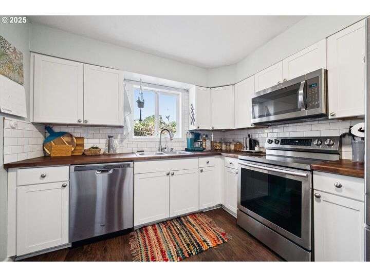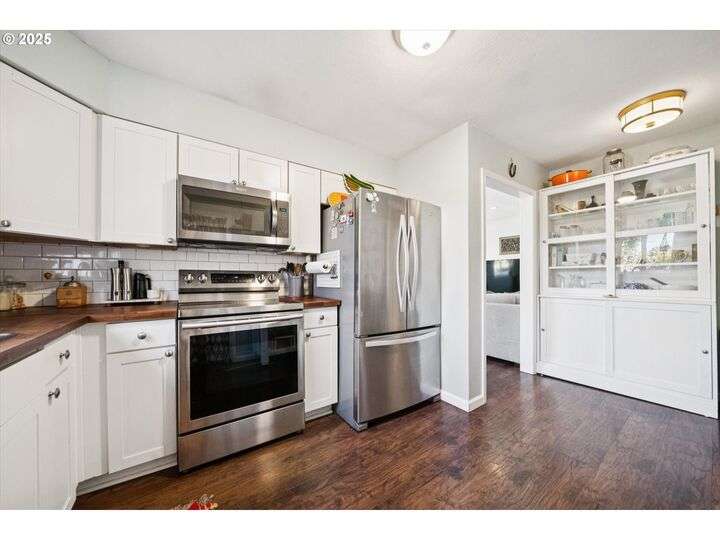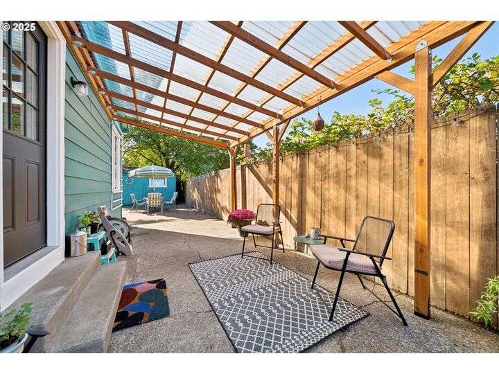 Say hello to this charming and remodeled urban cottage! Featuring two main-floor bedrooms plus a finished attic/bonus space (office/third bedroom/cozy hangout), this cheery home has a little something for everyone. The crisp renovated kitchen offers character and functionality, with stainless steel appliances and efficient storage while the vintage-style bathroom offers a classic clawfoot tub. Outside, enjoy a fully fenced and landscaped yard with garden beds, a storage shed, multiple patios and more. Nestled on a quiet street with easy access to dining, coffee, bakeries, shopping (Mall 205) higher education (PCC), Mt Tabor, transit and arterials, this home is a FANTASTIC value! Enjoy [mostly] main level living with the city at your fingertips. This home has a brand-new high efficiency furnace and central a/c too! Storage galore! Check out the adorable park at the end of the street! [Home Energy Score = 6. HES Report at https://rpt.greenbuildingregistry.com/hes/OR10206106]