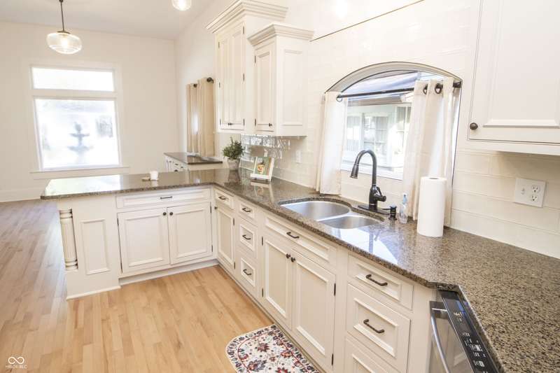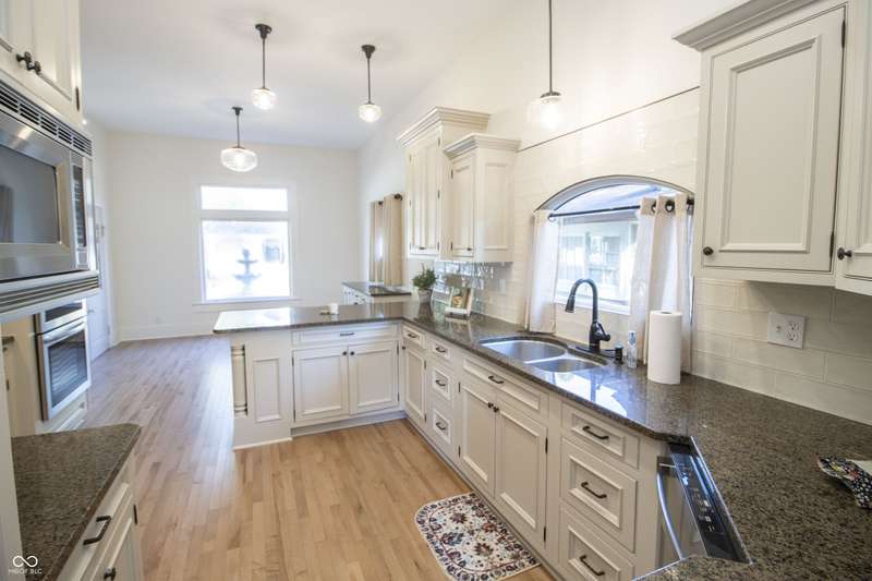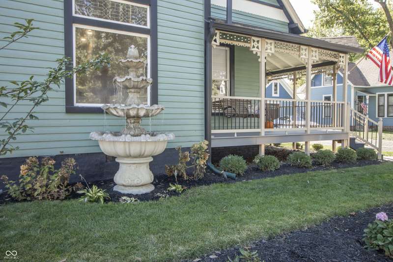 This stunning Victorian home was featured on the 2024 Historic Homes Tour, showcasing its unique blend of modern updates and timeless charm. Situated within walking distance of all the vibrant restaurants, events, concerts, and shops on the Downtown square, this home is ideally located for those who enjoy a lively atmosphere. Boasting 3 bedrooms and 3 full bathrooms, each bedroom suite offers its own private entrance. All bathrooms have been beautifully renovated with stylish tile floors, walk-in showers, and elegant vanities. The kitchen is a chef's dream, featuring top-of-the-line upgrades like granite countertops, stainless steel appliances, gas stovetop, custom cabinets, and modern hardware and light fixtures. Throughout the home, beautiful hardwood floors enhance its elegance. You'll appreciate the character of the antique fireplace mantel, tall ceilings with original crown molding, and classic doors. Almost every surface has been updated on this home and is in excellent condition. A detached garage, added in 2023, includes a concrete driveway accessible via the alley. It features heating, epoxy floors, and finished drywall giving you flexibility of use as additional storage, workshop or a Game room/Rec area. The outdoor spaces are perfect for entertaining, with a wrap-around porch complete with a porch swing and peaceful water fountain and back deck made of low-maintenance composite wood. A huge firepit and newer wood privacy fence transform the backyard into an entertainer's dream.