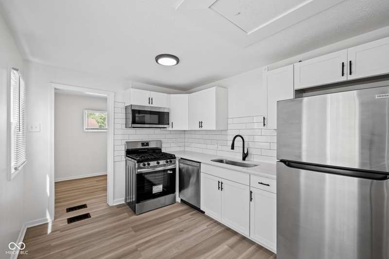 This fully updated 2-bedroom, 1-bath bungalow offers the perfect blend of charm, functionality, and location. Tucked just minutes from downtown Indy and the buzz of Fountain Square, it's move-in ready with modern upgrades throughout. The kitchen features stainless steel appliances, tiled backsplash, and clean, contemporary finishes. The bathroom has been fully redone with a tile surround and updated vanity. Sitting on a rare oversized city lot, the home also includes a two-car detached garage, full privacy fence, and ample outdoor space. Whether you're a first-time homebuyer or an investor looking for a strong rental, this property is positioned in one of Indy's fast-growing pockets with convenient access to parks, shops, and the Red Line transit system.