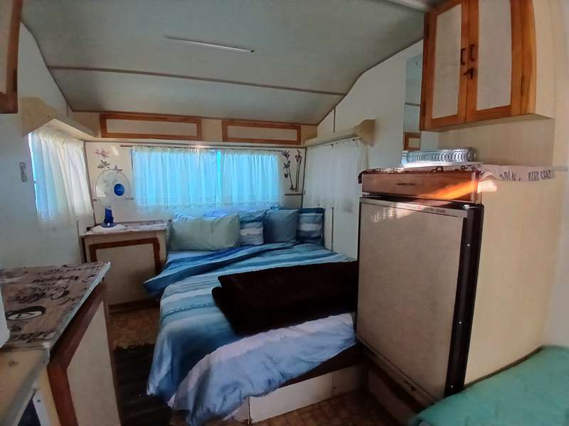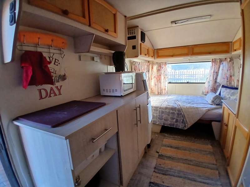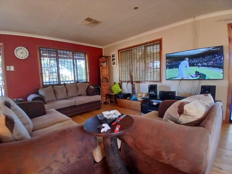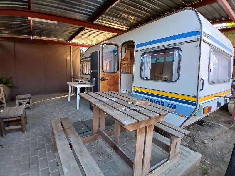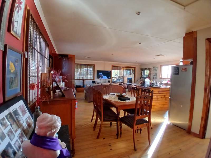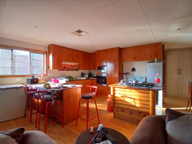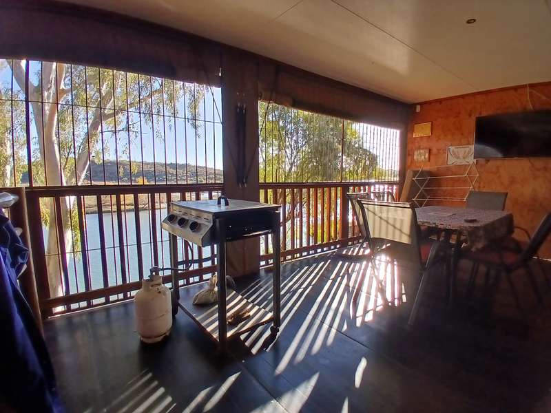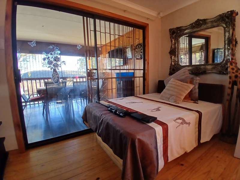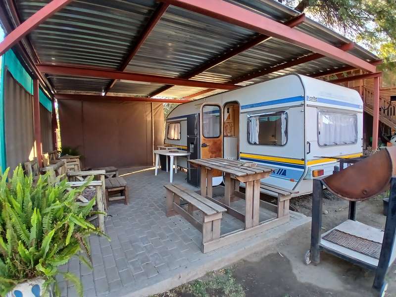 Nestled along a tranquil river, this charming wooden house offers an idyllic escape with stunning water views. The cozy home features one bedroom, two bathrooms, a fully equipped kitchen, a comfortable lounge, and a dining room, all designed to capture the serene river scenery. An entertainment area overlooks the river, perfect for relaxing and socializing. Adjacent to the house are two fully furnished caravans, each providing additional sleeping accommodations and equipped with two outside showers for a rustic yet comfortable experience. Sustainability is a priority with 10 solar panels connected to a 5kVA inverter, ensuring reliable power. A 5000-liter JoJo tank supports water needs, contributing to the property's partial off-grid capability. This riverside retreat seamlessly blends modern conveniences with natural beauty.