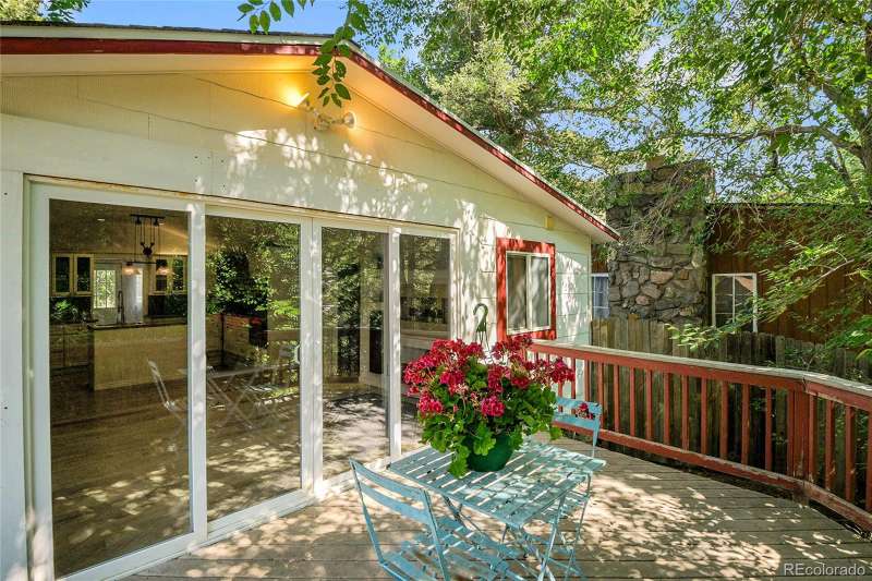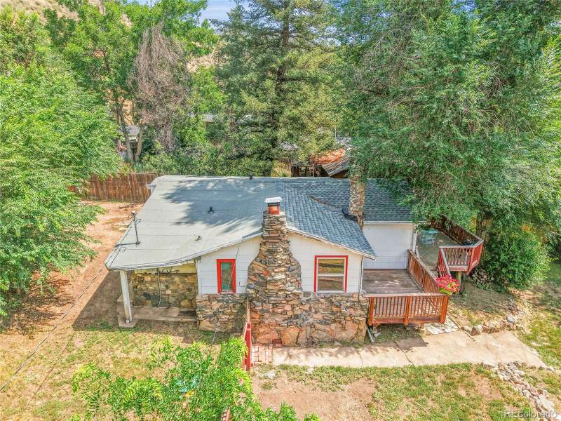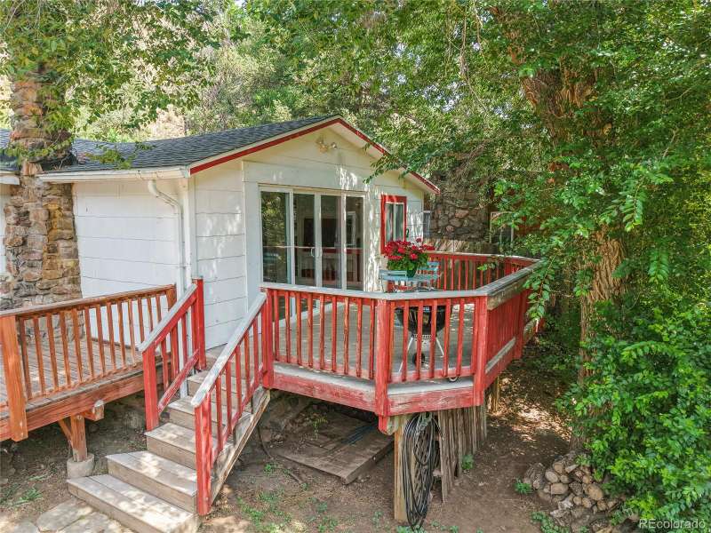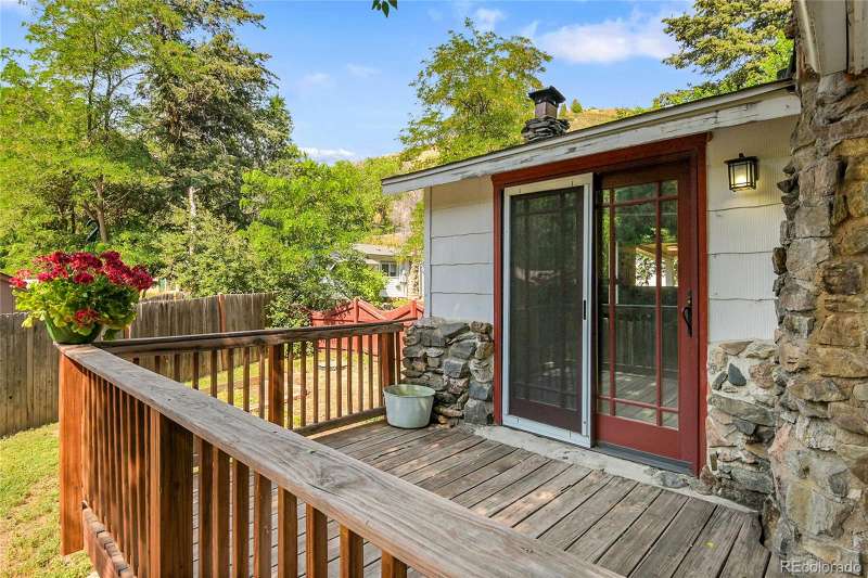 Welcome to your rare Bear Creek waterfront retreat at 21938 Miller Lane, where the sounds of rushing water and the beauty of nature surround you. Tucked into the quiet Starbuck Ranch Heights community in the small, scenic town of Idledale, this special home backs directly to Bear Creek-you can hear it from inside the house and while relaxing on the deck. Just minutes from C-470, Red Rocks Amphitheater, and a quick 25-minute drive to Denver, this location offers unmatched tranquility without sacrificing convenience. This charming 2-bedroom, 2-bathroom home offers 1,033 square feet of comfortable, light-filled living space. Step into the bright living area, featuring vaulted ceilings and a wall of windows that open directly onto your private deck. This double sliding door allows for seamless indoor-outdoor living, perfect for soaking in the sights and sounds of the creek below. The well-designed kitchen features stainless steel appliances, a workspace island with a sink, and room to cook and gather. The primary suite is a peaceful haven with its natural gas fireplace and a spa-like bathroom complete with a soaking tub. Just a 2-minute walk from your front door, Little Mountain Park provides access to the Lair o' the Bear trail system, ideal for hiking, biking, and exploring the foothills. Enjoy your backyard oasis, whether you're gardening, entertaining, or simply unwinding beside the water. Practical upgrades include a new roof (2023), most fencing replaced (2023), a new septic tank (2020), and a brand new hot water tank in the boiler (2025). The home is connected to public water and natural gas, offering rare convenience in a mountain setting. Come experience the perfect blend of comfort, nature, and accessibility; your creekside Colorado dream awaits.
