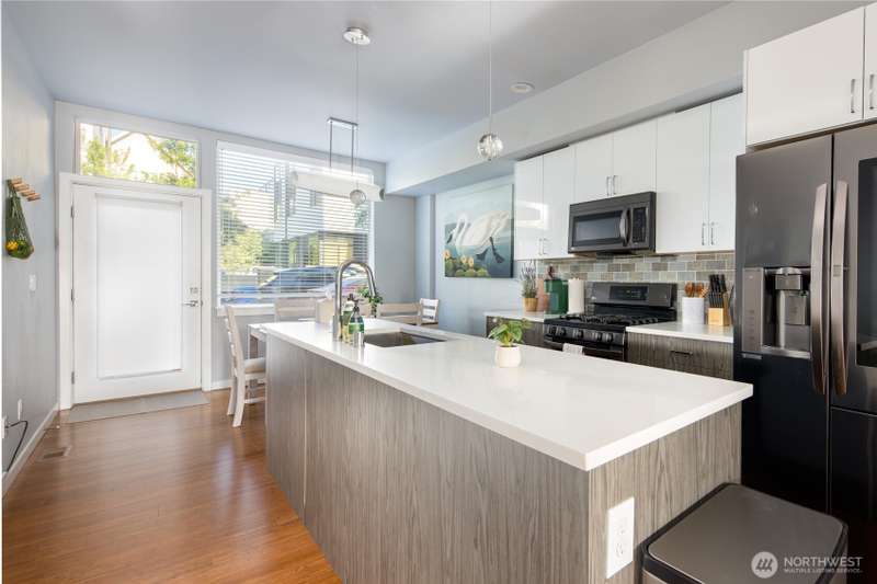 Located in the heart of it all—just a short walk to popular restaurants, parks, bars, and transit—this home delivers both lifestyle and convenience. The bright east-facing living room is filled with natural light, while the chef’s kitchen features a gas range, stainless steel appliances, quartz counters, and a spacious island for gathering. Hardwood floors, a floating staircase, and ductless A/C create modern comfort throughout. Large private bedrooms offer the perfect retreat, and dedicated parking in the back adds everyday ease. The private rooftop deck showcases stunning views, ideal for entertaining or relaxing. Served by amazing schools, this home truly combines sustainability, function, and style with no compromises.