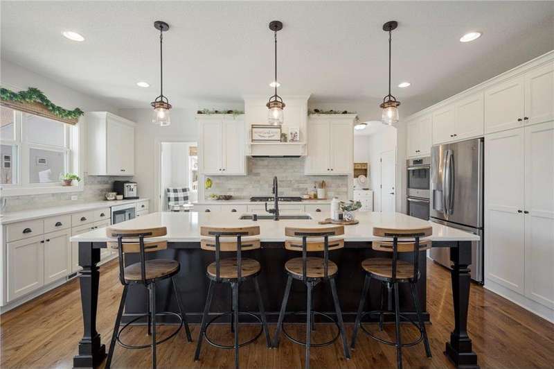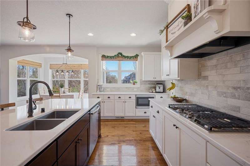 Welcome home to this immaculate 5 bedroom, 5 bath, custom built 2 story in the high demand neighborhood at the Reserve at Elm Creek, surrounded by the Elm Creek park reserve with neighborhood pool, park, and access to trails! This 2018 built home shows like a model home. Walk in an see the inviting open floor plan with gourmet kitchen featuring high end enameled cabinetry, quartz countertops, large center island, top end stainless steel appliances with double oven and gas cook top, with informal dining room with awesome views, spacious great room with box vault, gas fireplace, and built ins. Other main floor features include gorgeous hickory floors, bonus/flex room off kitchen and mudroom off garage with built in bench. Walk upstairs and find a gorgeous primary suite with huge walk in closet, and private primary bath with separate tub, and shower, two separate vanities. The upper-level features 3 additional large bedrooms, and two additional full baths, upper-level loft area and bedroom level laundry room. Head downstairs to the lower level and find a huge lower-level family/recreation room with built in entertainment center, additional bedroom and full bath. Walk to the backyard and relax with a beautiful patio and firepit overlooking nature! This quality-built home is a perfect blend of craftsmanship and high-end finishes, all within distance to numerous parks, trails, shopping, schools, and neighborhood amenities. A must see to appreciate!