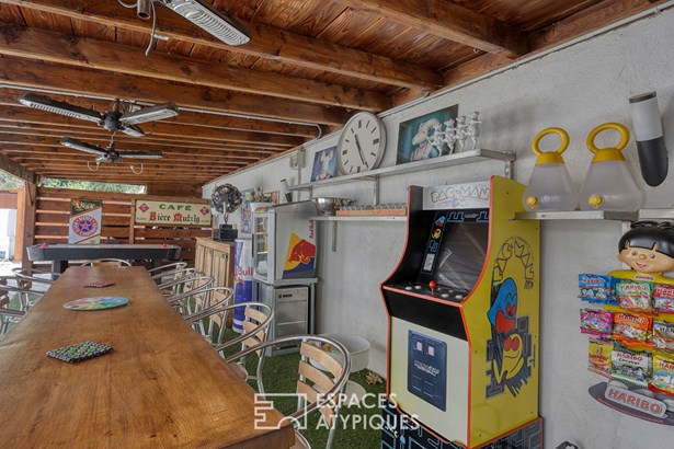 Outside, everything is provided for relaxation, a covered heated wooden swimming pool, a petanque court and a vast covered terrace housing a fully equipped outdoor kitchen perfect for successful receptions. All the equipment remains in place.