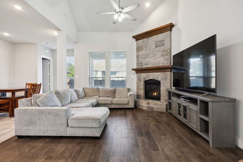 This beautifully refreshed 5-bedroom, 4-bath Highland Home on an oversized corner lot in West Crossing now features bright neutral interiorsready for you to move right in.Inside youll find 2 bedrooms and 2 full baths on the main level plus a private study and two dining areas, perfect for guests or multigenerational living. The primary suite offers a bay-window sitting area for a private retreat. A soaring two-story entry opens to an expansive living area with stone fireplace, vaulted ceilings, and walls of windows. The upgraded kitchen boasts a gas cooktop, double ovens, built-in stainless appliances, Blanco sink, and seamlessly connects to the dining and family spaces.Upstairs includes 3 additional bedrooms, 2 full baths, a large game room, and a flexible media or bonus roomperfect for movie nights, hobbies, gym, video gaming room, or a second office.Life in West Crossing means more than just a beautiful homeyoull enjoy a state-of-the-art clubhouse, resort-style pool, extensive trail system connecting directly to Slayter Creek Park, where youll find additional amenities like an 18-hole disc golf course, lighted athletic fields, pavilion, splash pad, walking trails, tennis and basketball courts, and pickleballperfect for extending your outdoor adventures just steps from home. Convenience to top schools, shopping, dining, and Highway 75.Dont miss the chance to tour this bright, move-in-ready homecome see it at the open house this weekend!