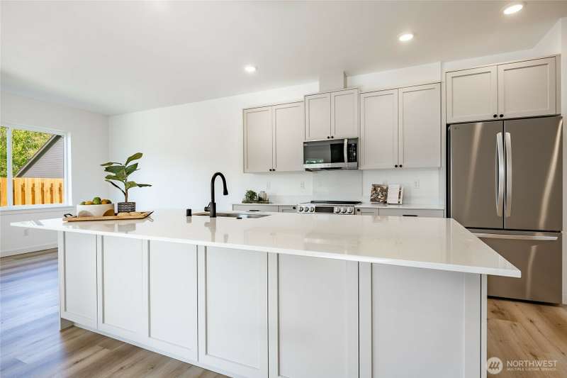 Experience single-level living with comfort and style in this thoughtfully designed 3-bed, 2-bath home at The Ridge. Enjoy an expansive open-concept layout with tall ceilings, a cozy propane fireplace, and abundant natural light. The step-free design offers ease and accessibility, while the covered back patio provides year-round outdoor enjoyment. Quality finishes include luxury vinyl plank flooring, quartz countertops, and shaker cabinetry. Built on a durable, low-maintenance slab-on-grade foundation. Located minutes from I-5 and downtown Blaine in a dog-friendly neighborhood with sidewalks, trails, and dog stations. *LIMITED-TIME SAVINGS: Up to $5,000 in Seller Credit + .75% Preferred Lender Credit.