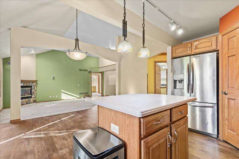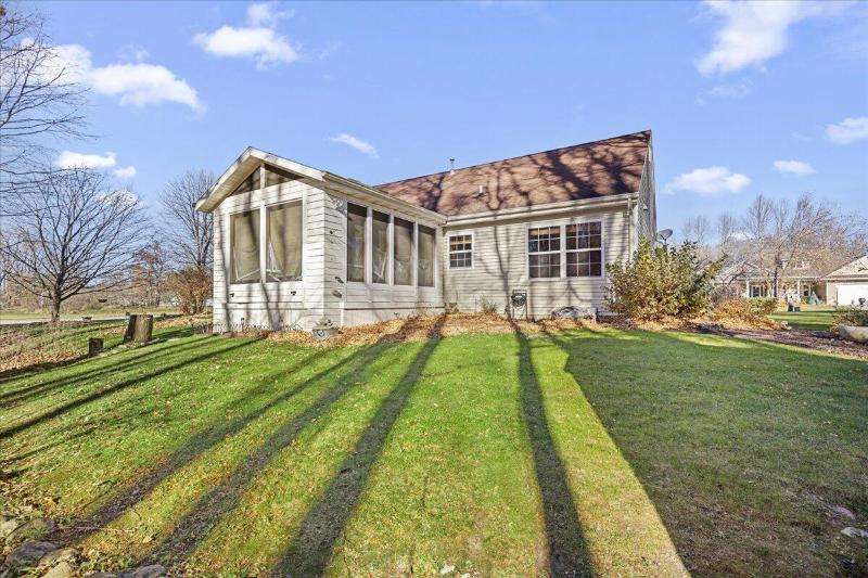 Welcome to this beautiful open-concept home nestled at the end of a quiet cul-de-sac with peaceful wooded surroundings. Situated on a large lot, this home blends comfort and style. As you step inside the home you are welcomed by a cozy stone fireplace and sunken living room.. The updated kitchen features ample counter space and storage making it the heart of the home. Enjoy seamless indoor-outdoor living with a screened in porch overlooking the tree lined backyard - an ideal spot for morning coffee or relaxing evenings. Primary suite offers large bedroom, walk-in-closet, bathroom with a shower and also a walk in tub. First floor offers two nice sized bedrooms and large laundry area. The unfished basement offers endless potential. Extras: backyard shed and tons of storage.